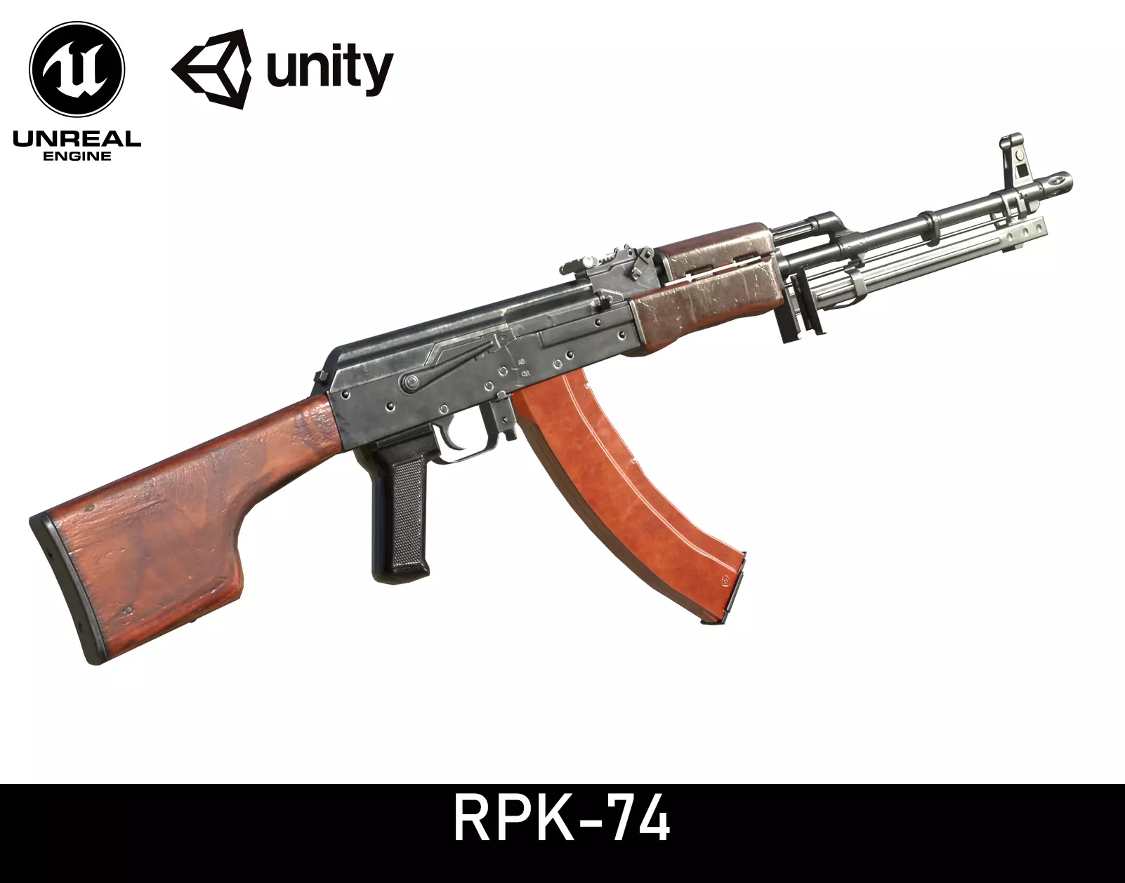RPK-74 model with PBR textures, two material sets, created for games, real time renderings, etc.