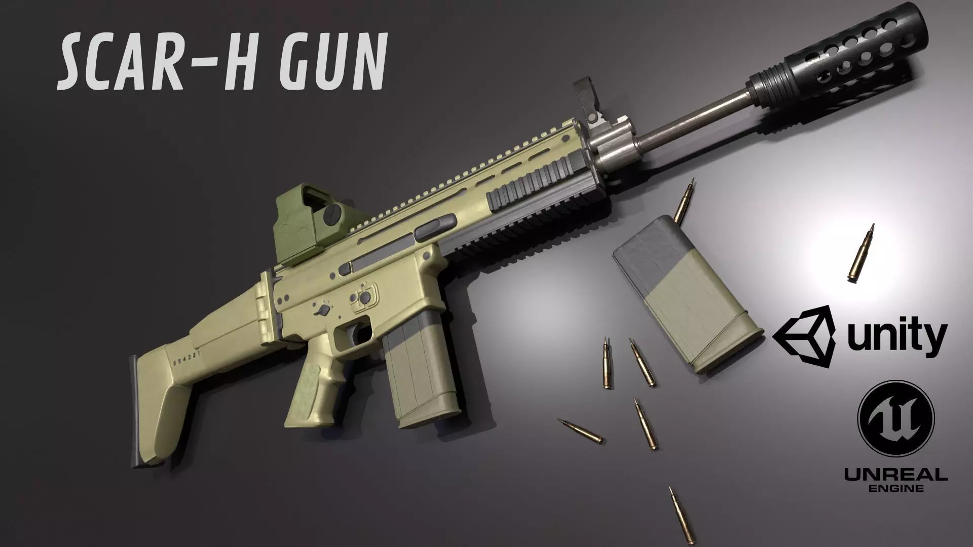 SCAR H PBR assault rifle game ready Kit Low-poly 3D model