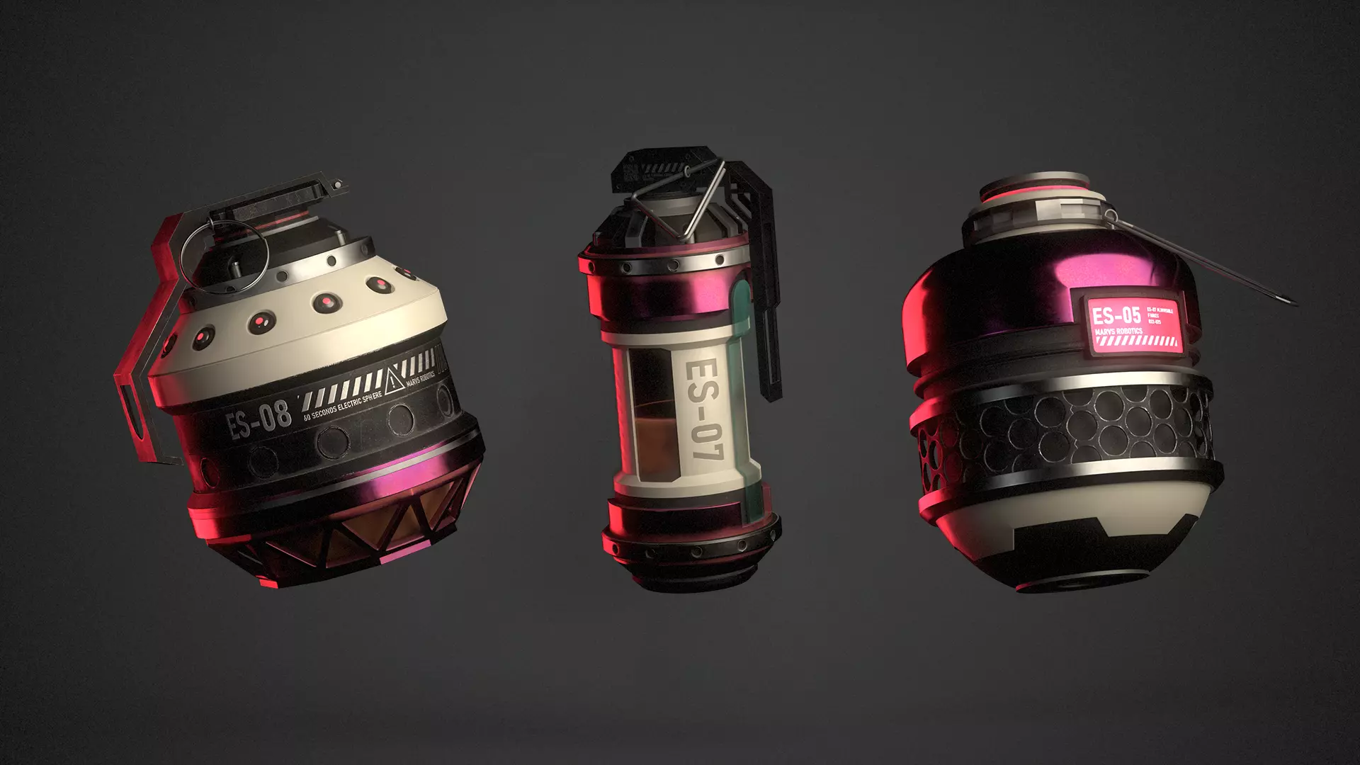 3D Models of 3x Sci-Fi Grenades, Fully Textured and Ready for Game engines and Animation Videos.Designed by @346EUR