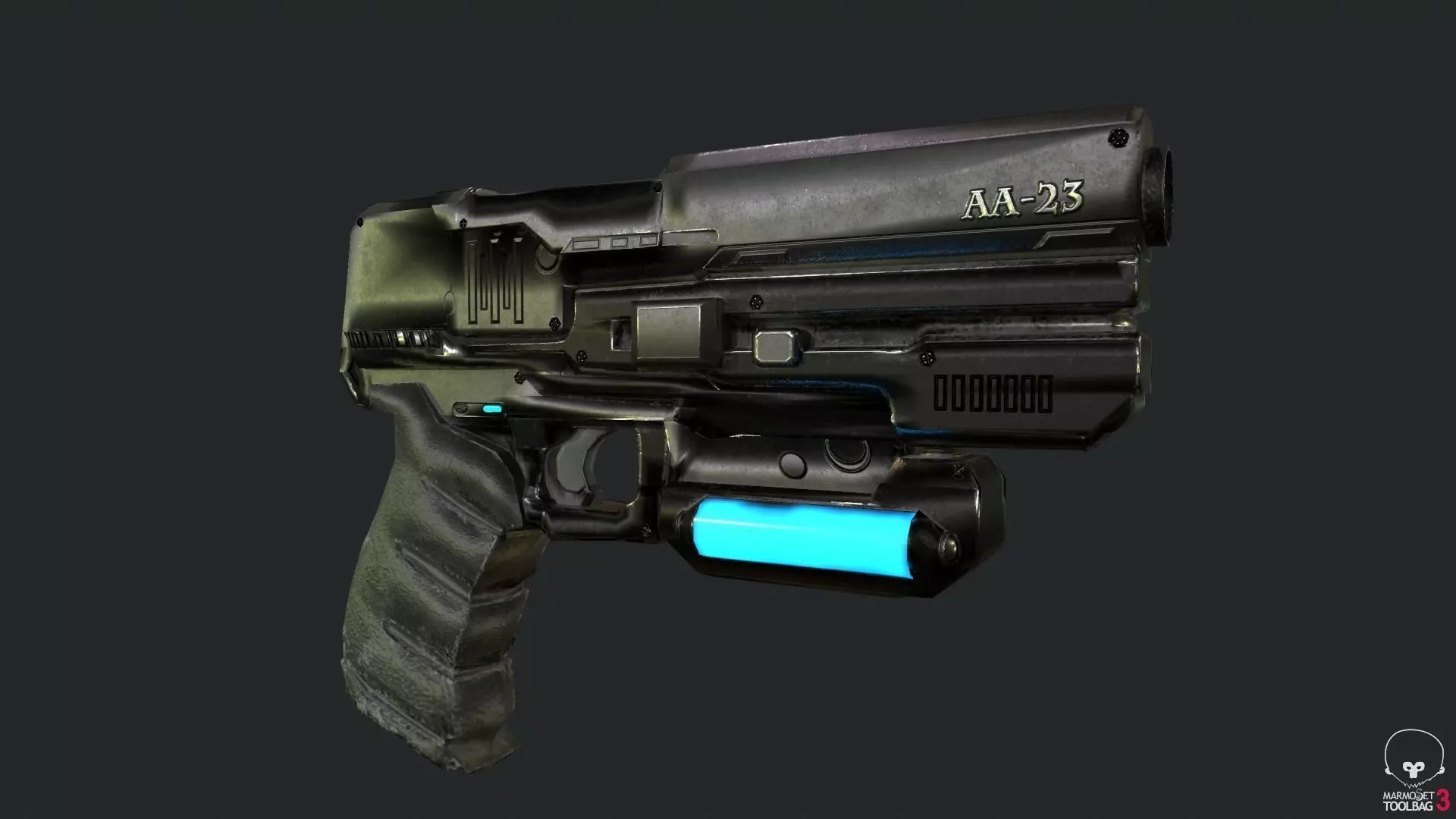A SCI-FI Pistol was like my first weapons made for a cancel indie game and it is ready for a game engine it has 4477 verts 4293 polys and 8586 tris and the textures are 2048 x 2048 Diffuse, AO, Emissive, Metallic, Normal and Roughness if you need game assets for your games I am available for commission works.