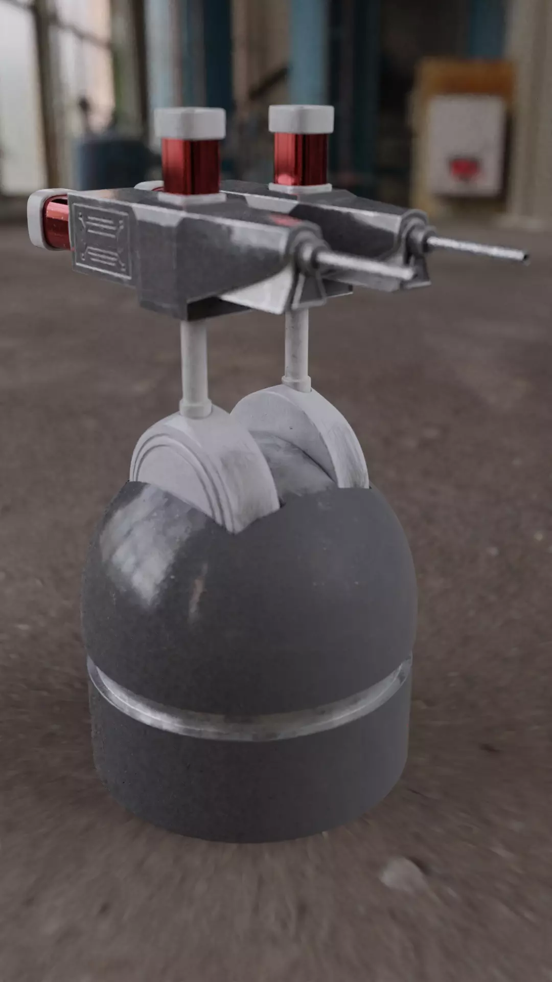 High-poly rigged scifi turret model: