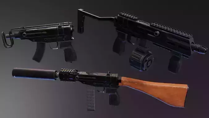 Czechoslovakian Samopal vzor 61 or rather 68 as I made mags using a 9mm parabellum. Pretty famous SMG used in many games and movies, but you don't see it often with tacticool stuff on it, so I made a few variants of it. That include: basic internals, handguard, barrel mount with picatinny rails, folding stock original and modern, wooden stock, top picatinny rail, front grip, straight magazine, drum magazine, suppressor and non-standard grip, bolt handles and muzzle.