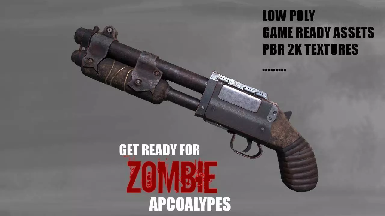 shotgun for zombie games Low-poly 3D model