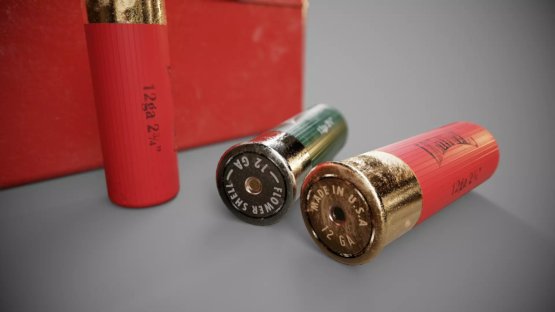 Shotgun shells and box Low-poly 3D model