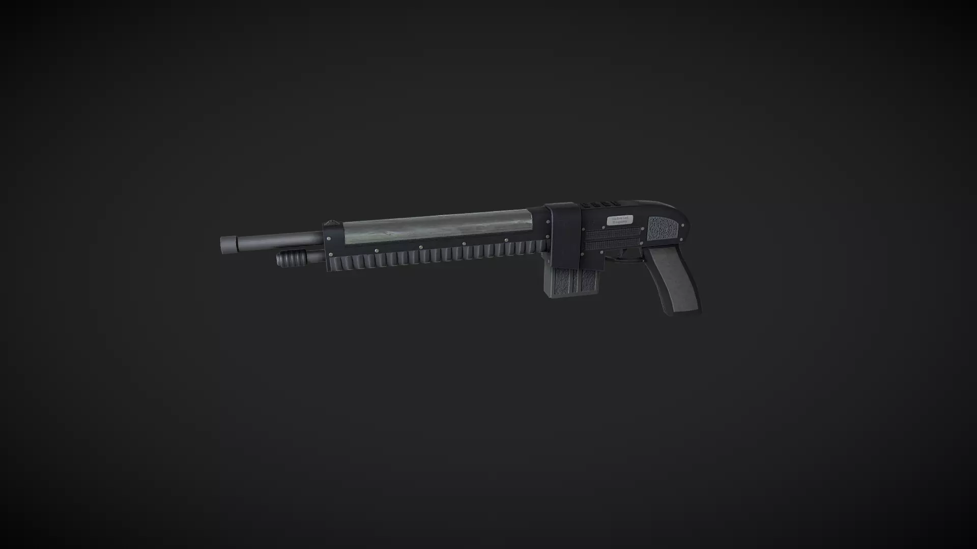 A fully rigged model of a modern style, 12 gauge shotgun with a magazine.
