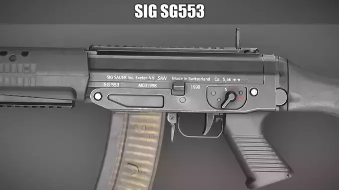 An updated version to the SG 552, the SG 553 by SIG Sauer AG is a carbine (or commando) length assault rifle part of the 550 series of Swiss made SIG rifles. Besides the change in charging handle design, the upgrade from the 552 to 553 re-positioned the recoil spring from the back of the receiver to wrap around the piston rod, which helped with improving reliability issues.