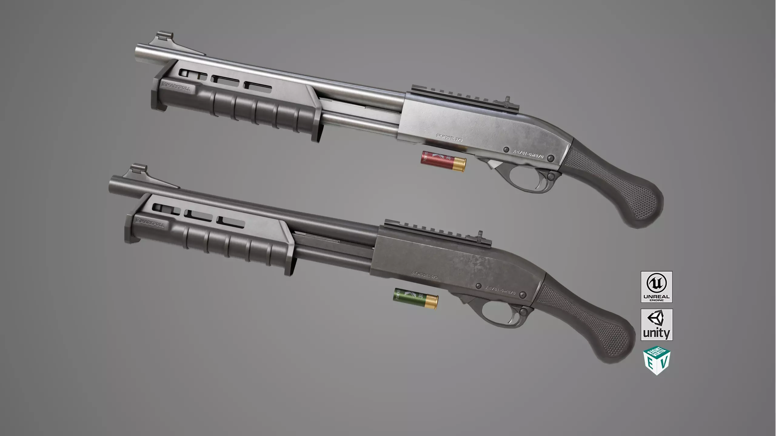 The Photorealistic 3D model of SmallShotgun 01 Black and Silver With Single Material, This model is suitable for any visual production - broadcast, high-res film close-ups, advertising, games, design visualization, forensic presentation, etc