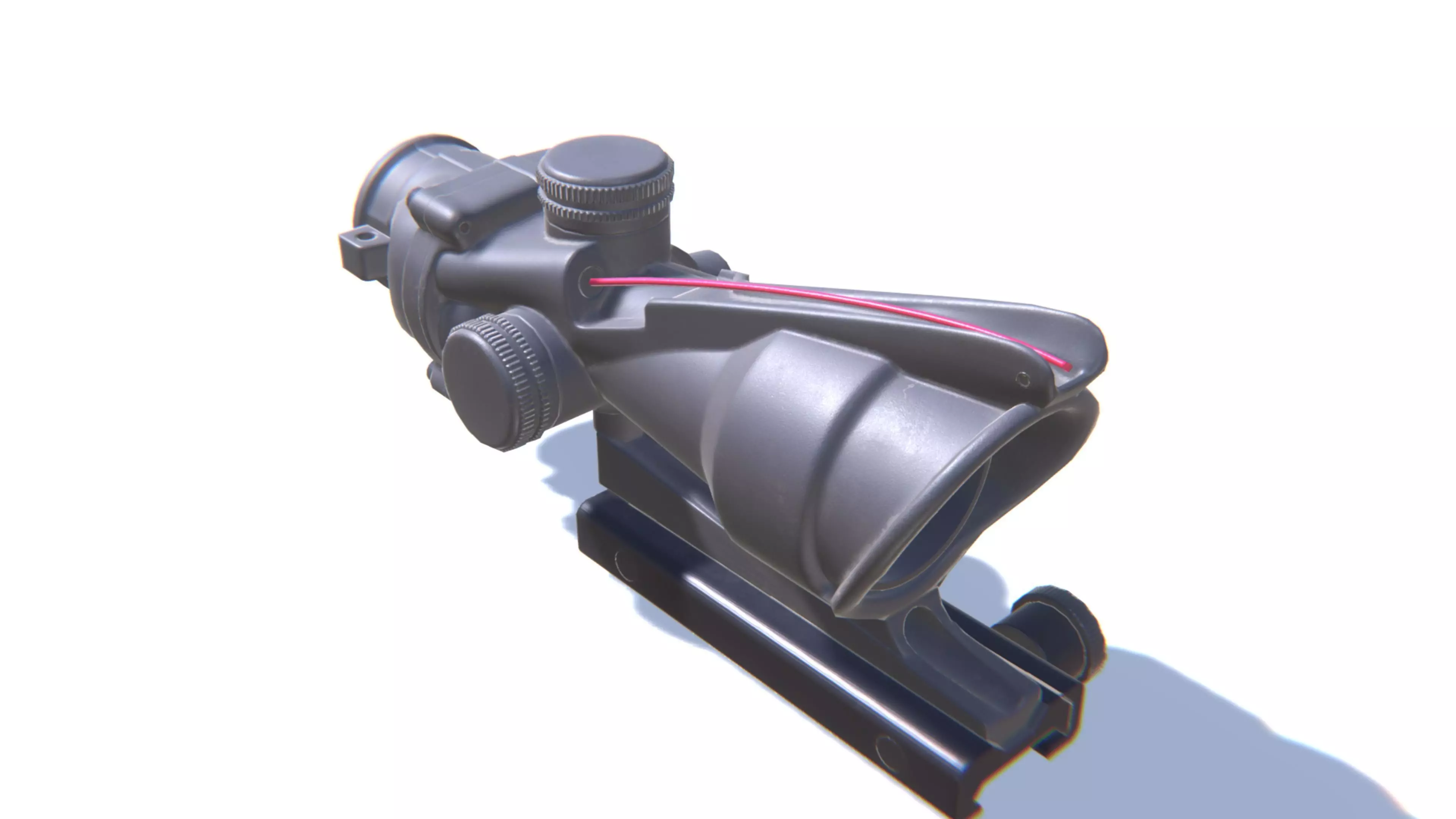 The model looks like an ACOG Sniper Scope. All parts of the model were made in full accordance with the original. Each dynamical part is separated and has correct pivot points, that allow easy animation and use in games.