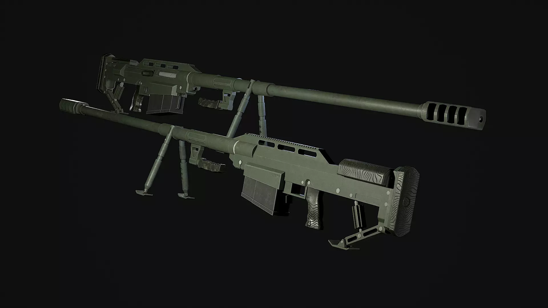 Snipex Alligator Anti-Material Sniper Rifle. As acurate as i could get it to its real life counter part. the magazine is holowed out and all parts of the gun can be easilly seperated allowing for easy animation.