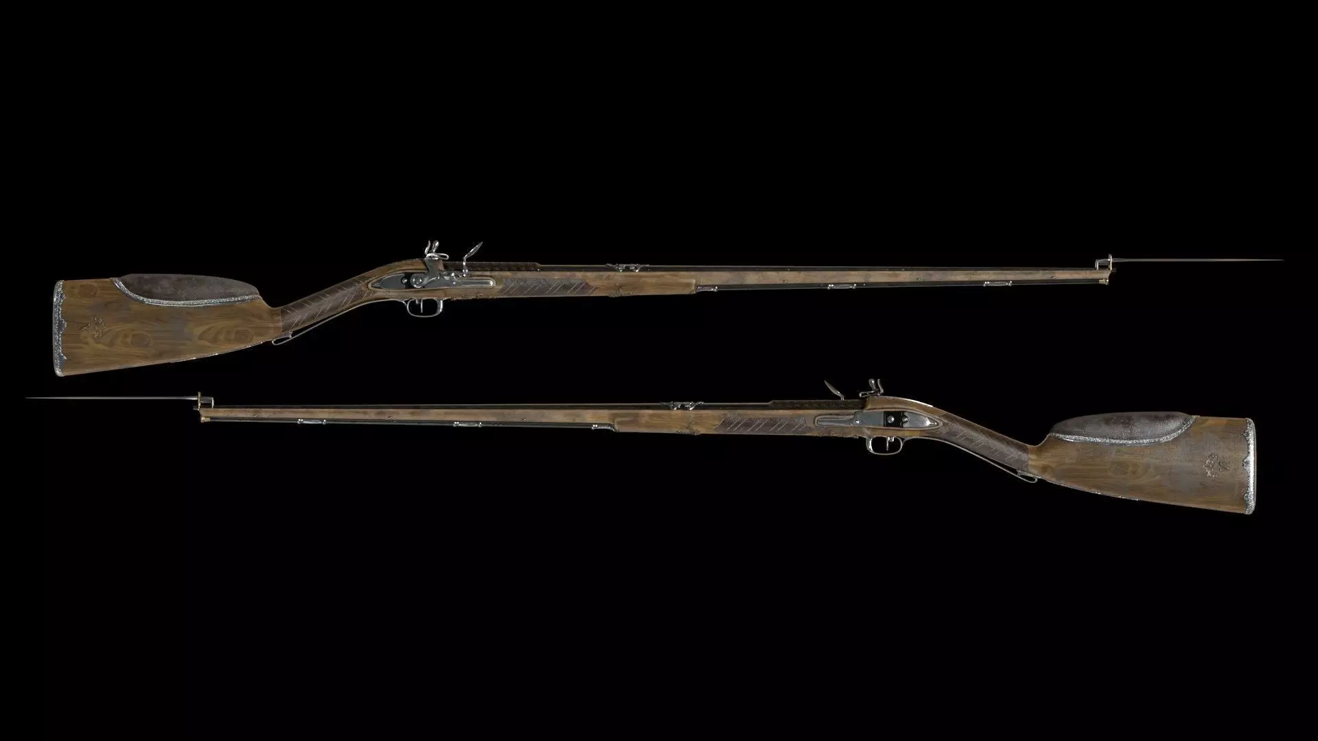 3d French Empire period officer rifle modeled in high precision.