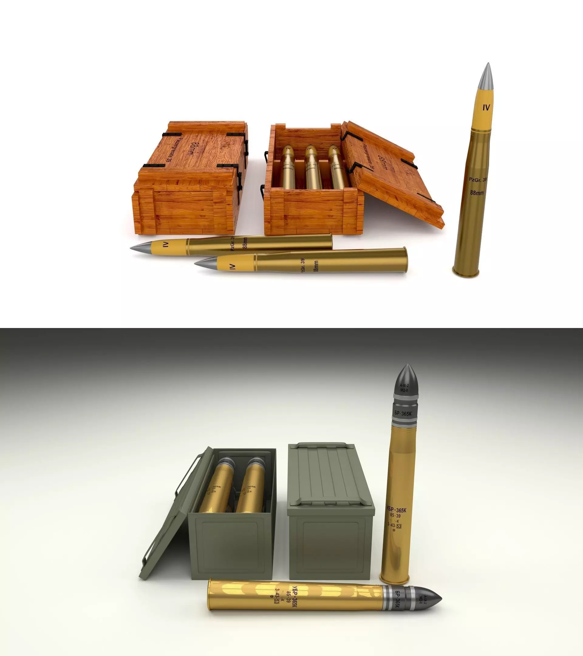 3D model pack consisting of the following WW2 items:-German 88mm Shell-Soviet 85mm Shell