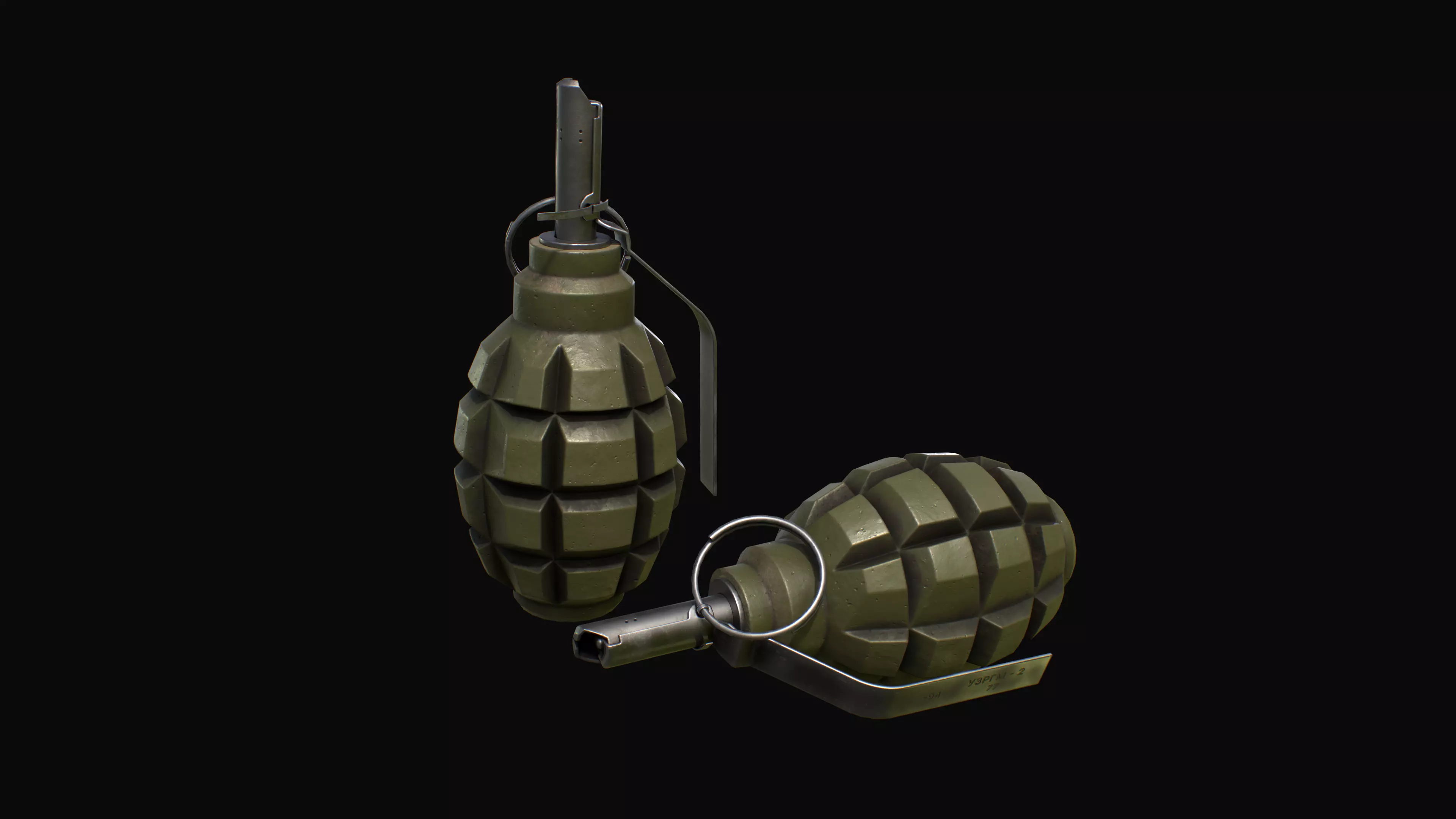 High quality low-poly model F-1 grenade, with PBR textures in 4k, also including textures for Unity and UE5 game engines. Game ready model F-1 for PBR game engines, renderers, first Person Shooters, VR games, and your other projects.
