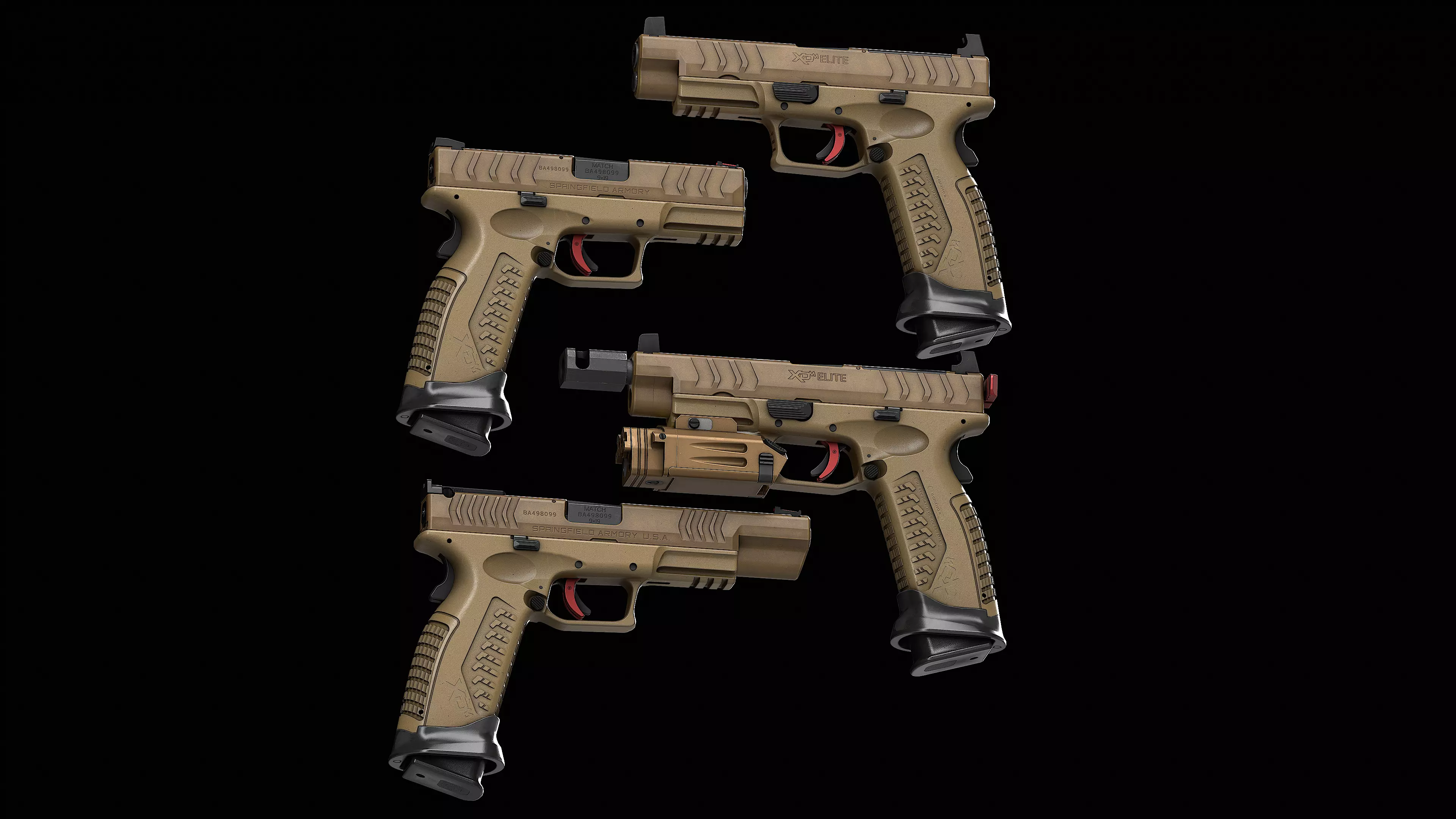 Springfield Armory XD M Elite All Versions: Game-ready 3D models ideal for professional projects in gaming, movie, animation and virtual reality. Our models are highly detailed, accurate and realistic, making them ideal for use in the most demanding projects. Most of our customers use them to create modding for games such as Ready or not, Arma3, Tarkov, DayZ, Fallout GTA V, etc.