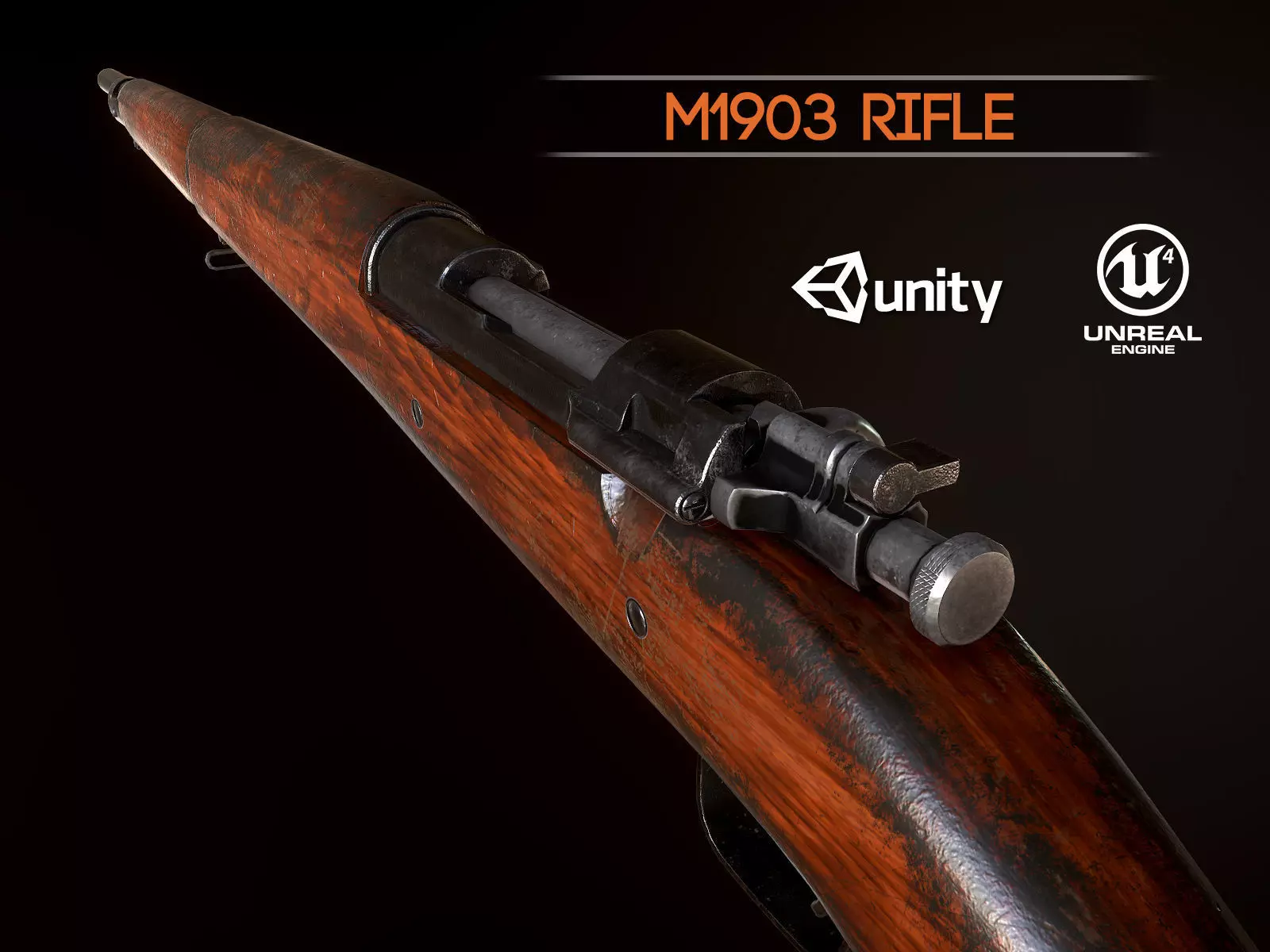 Springfield M1903 Sniper rifle . Lowpoly, optimized for modern game engines. The normal map was baked from a high poly model. Geometry is triangulated to ensure best shading. Model unwrapped manually to make most efficient use of the UV space. High quality 4K resolution PBR png textures. Comes with textures optimized for Unreal Engine 4 and Unity 5.