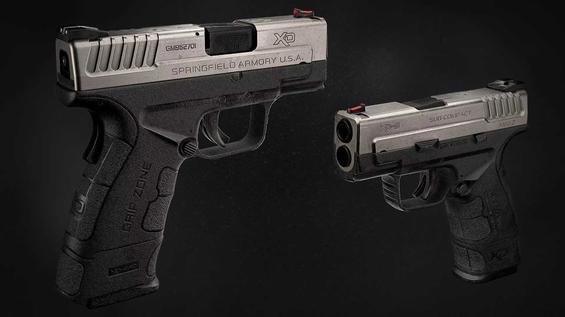 Springfield XD Mod.2 low poly model with high resolution textures.It's an high details game ready mesh for FPS projects, with 4K PBR textures made with Substance Painter. Textures are made for major game engine, Unity, Unreal Engine 4 and CryEngine. The Substance Painter file is included so you can activate or deactivate some layers to get more o less wearing.The model is divided in a logical way.