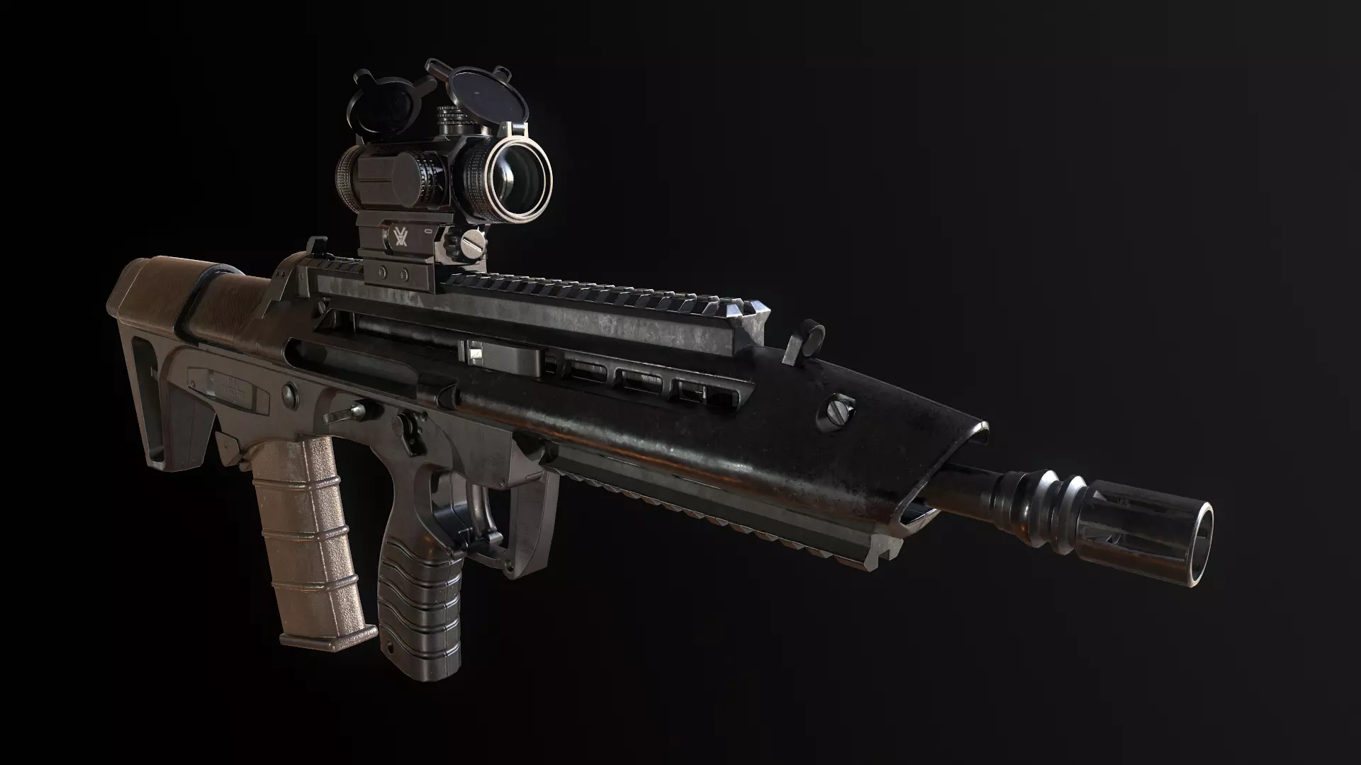 Uses Physically Based Rendering materials, which give the model realistic lighting and surface properties.