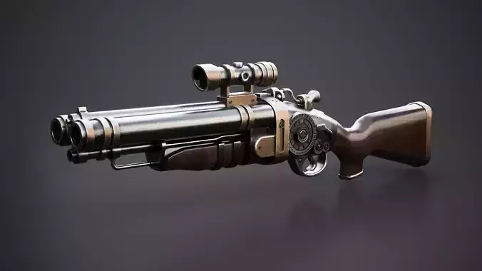 Steampunk Shotgun 3D Model with PBR Textures Low-poly 3D model