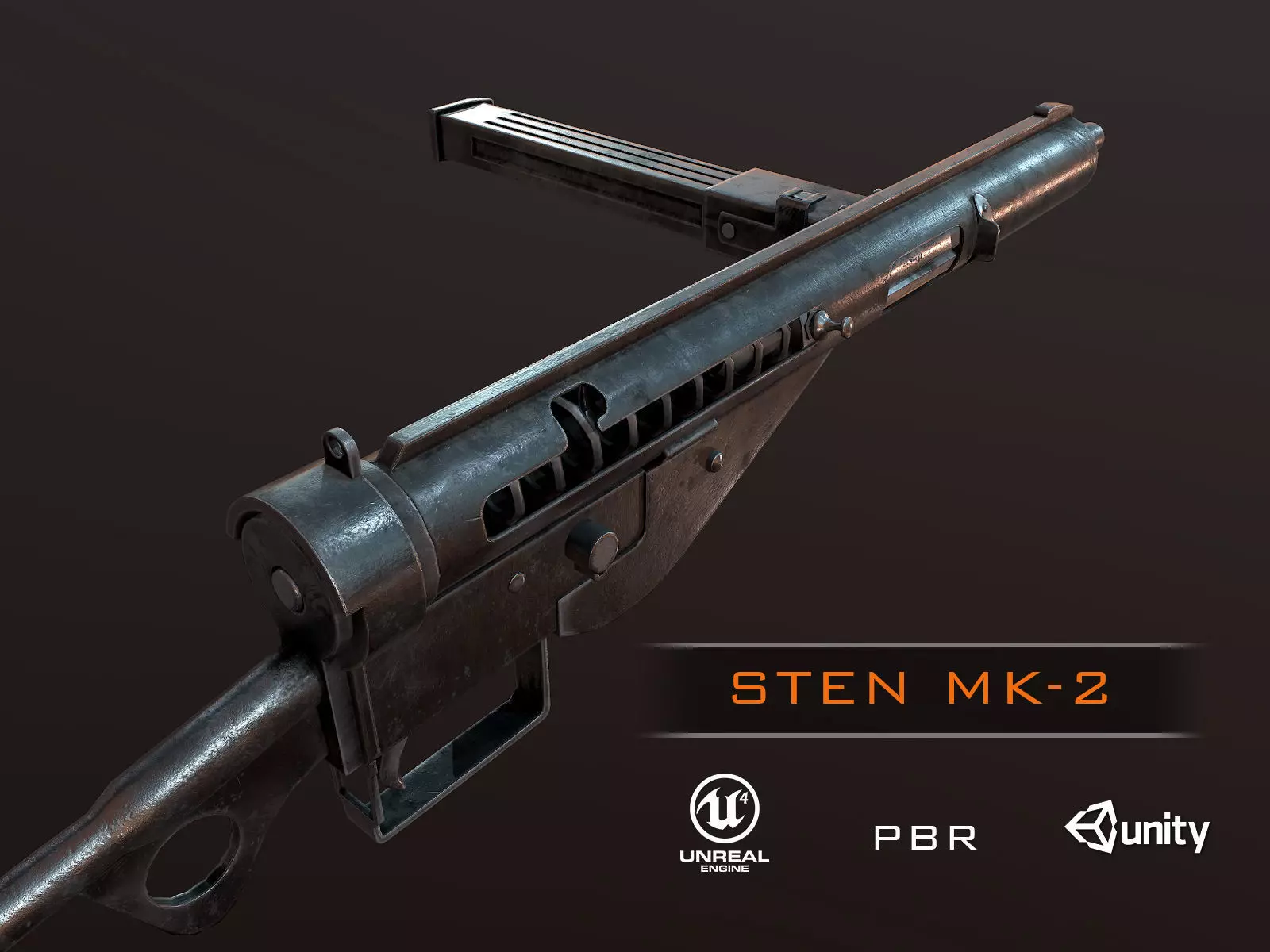 STEN Mk2 ww2 british smg pbr Low-poly 3D model