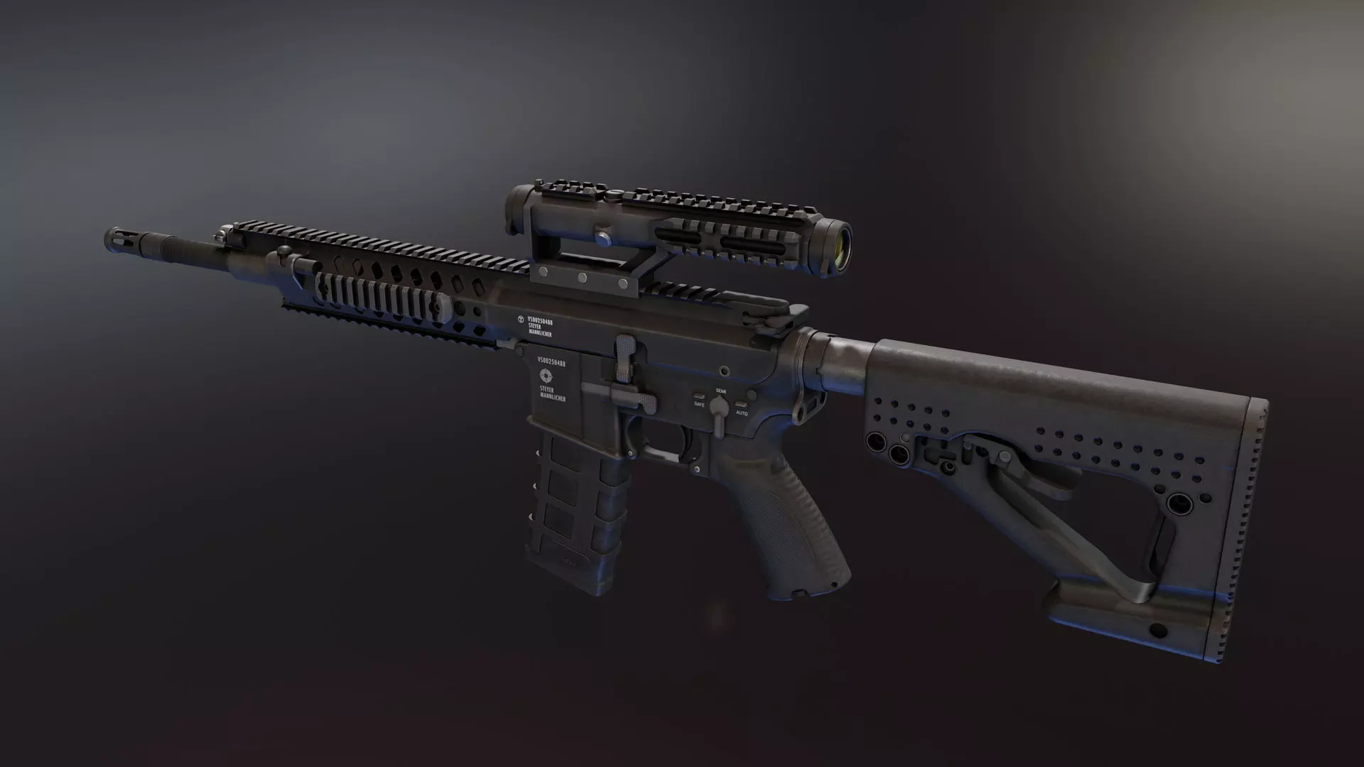 As for model it self, I slapped that distinctive styer aug scope and custom stock on it. Its rigged but there is also version with all parts separated.