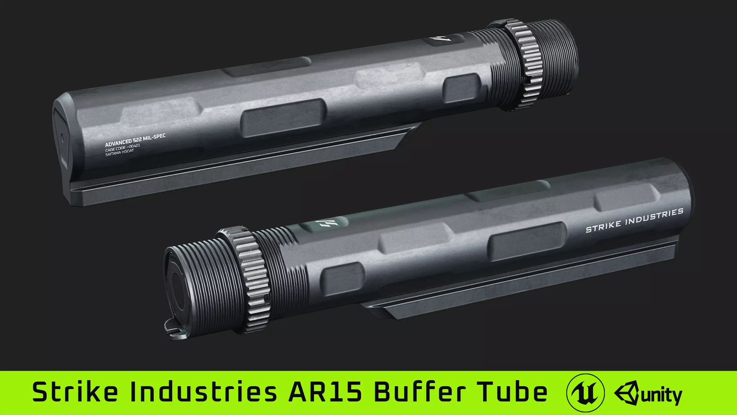 Lowpoly and realistic Strike Industries AR15 Buffer Tube 3d model optimized for game engines or any other usage in 3d software.
