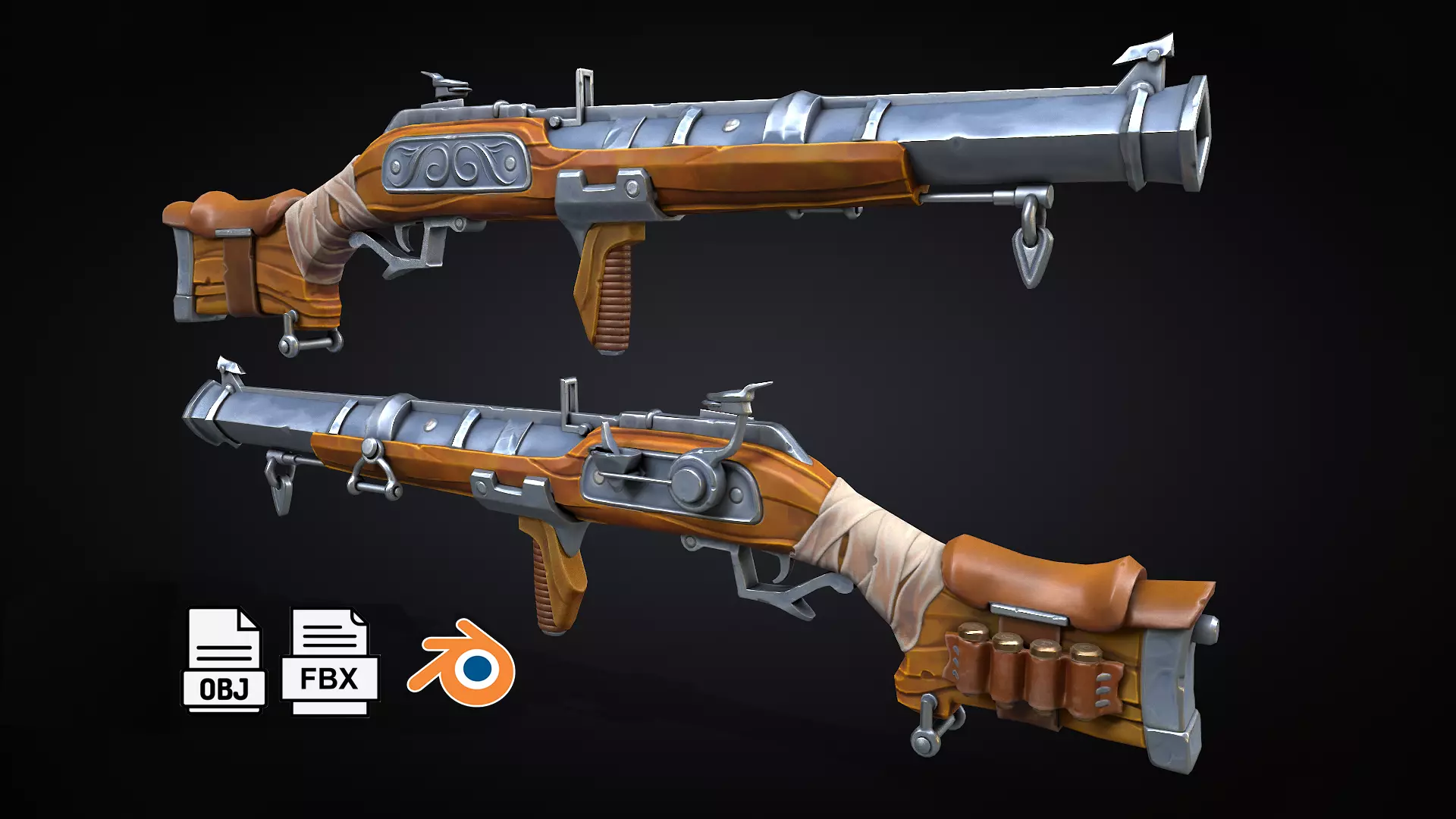Stylized Blunderbuss musket Low-poly 3D model
