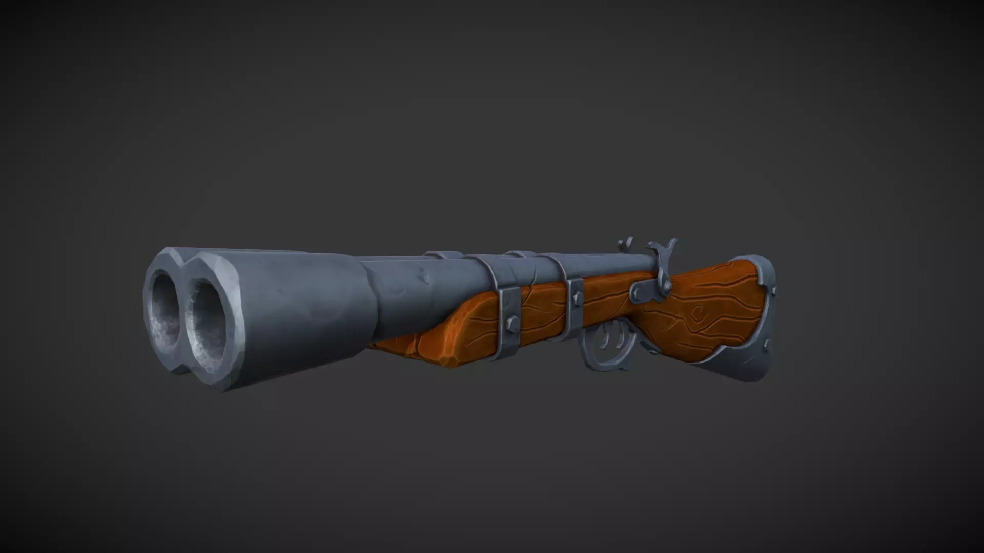 Stylized Double Barrel Shotgun Low-poly 3D model