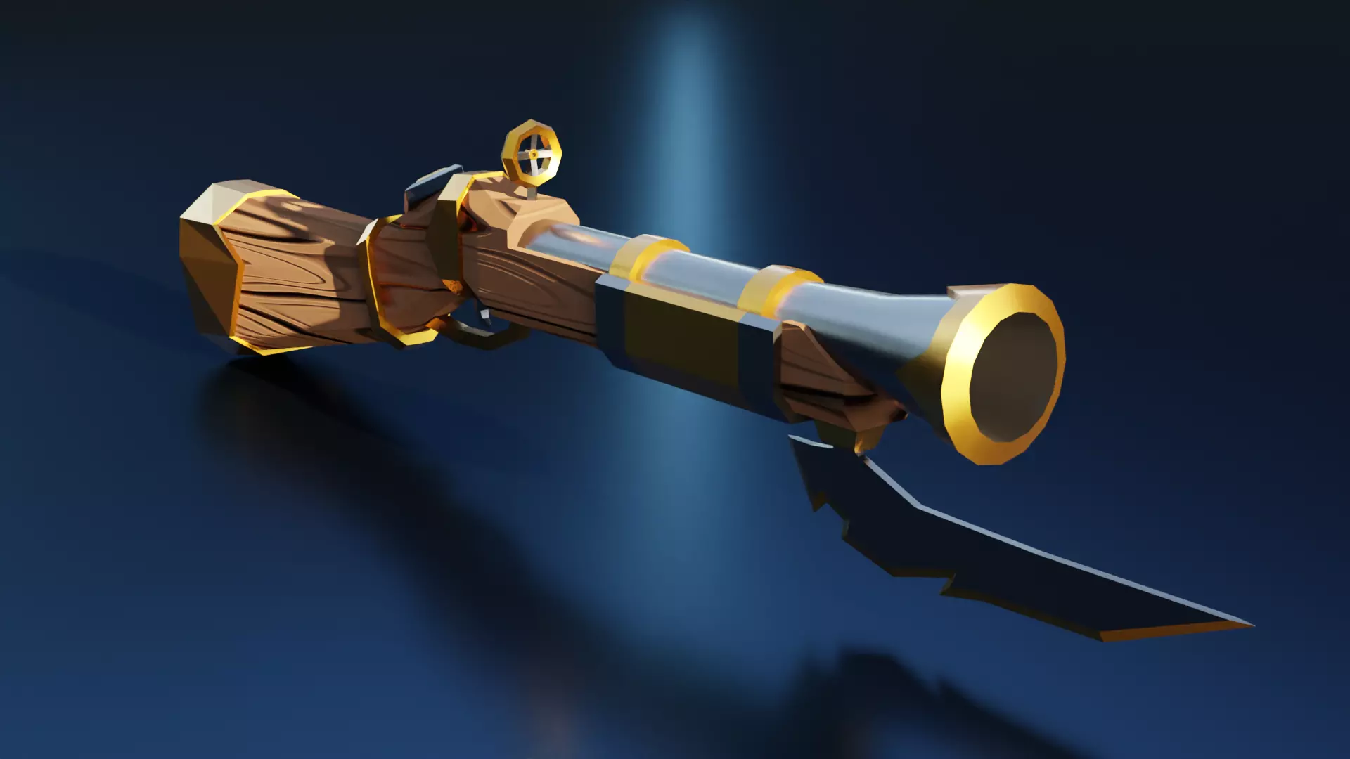 The content itself is a low-poly model of a stylized dwarf gun in a steampunk style, which has an attached blade at the barrel, that is, this weapon model can be used simultaneously in melee and ranged combat