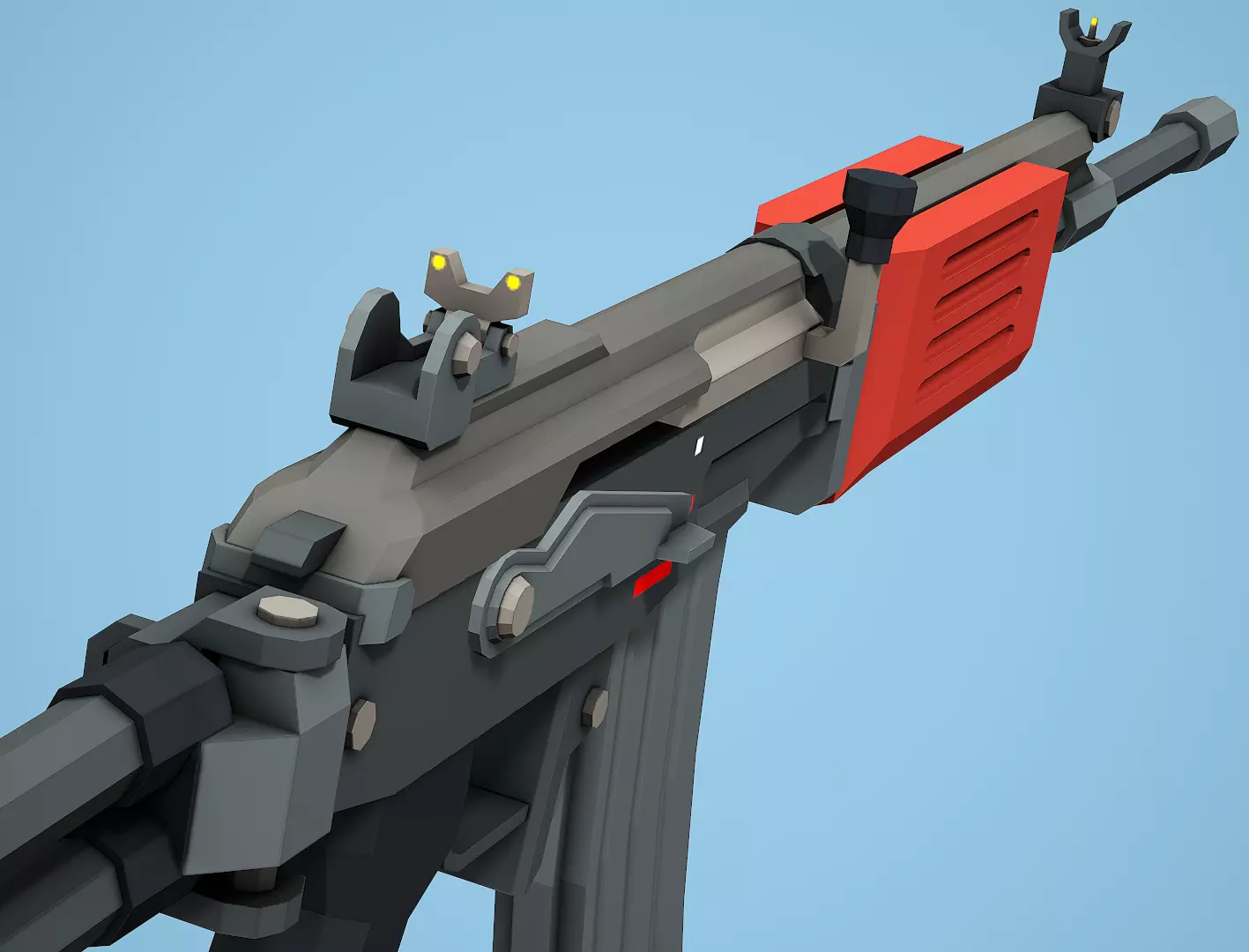 Low Poly Galil ARM Rifle. All objects and textures named correctly Texture size 1024x1024 Diffuse Only. Only one material. Minimum polycount. Great choice for any 1st\3rd person Mobile or PC F2P Game. Fully Rig Ready. All pivots in corrent places.