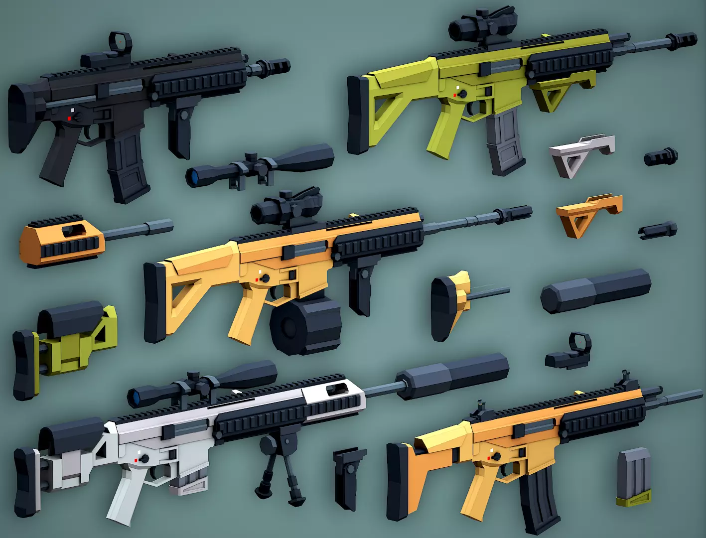 Low Poly Stylized Modular Bushmaster ACR Rifle model. This model include 22 Different Attachments. You can combines all modules as you want