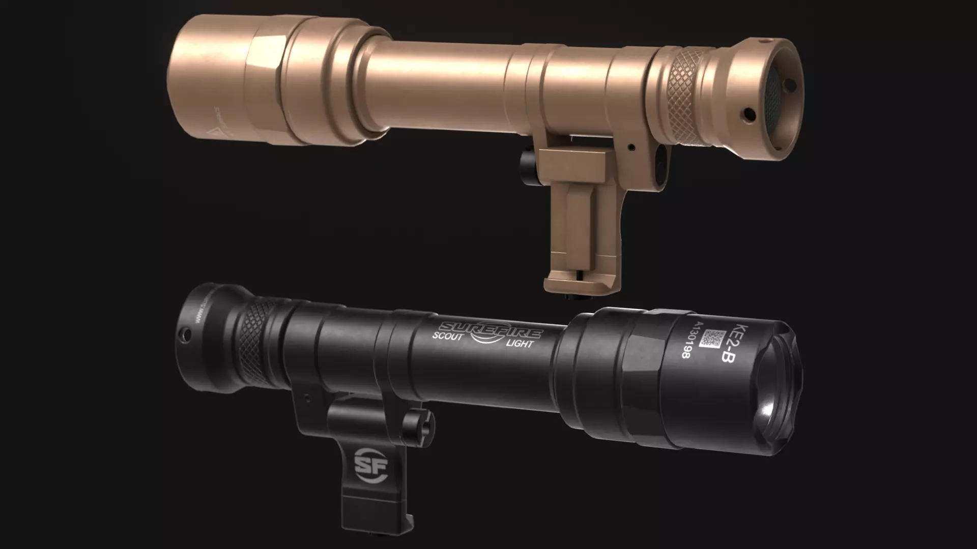 SureFire Scout Light Pro flashlight for mounting on firearms with a Picatinny Rail. Comes with an offset mount that can be adjusted accordingly.Please note that proportions may not be 100% correct. This model isn't made for 3D printing, it's a low poly asset made for use in games. The firearm in the render is NOT included in this purchase.