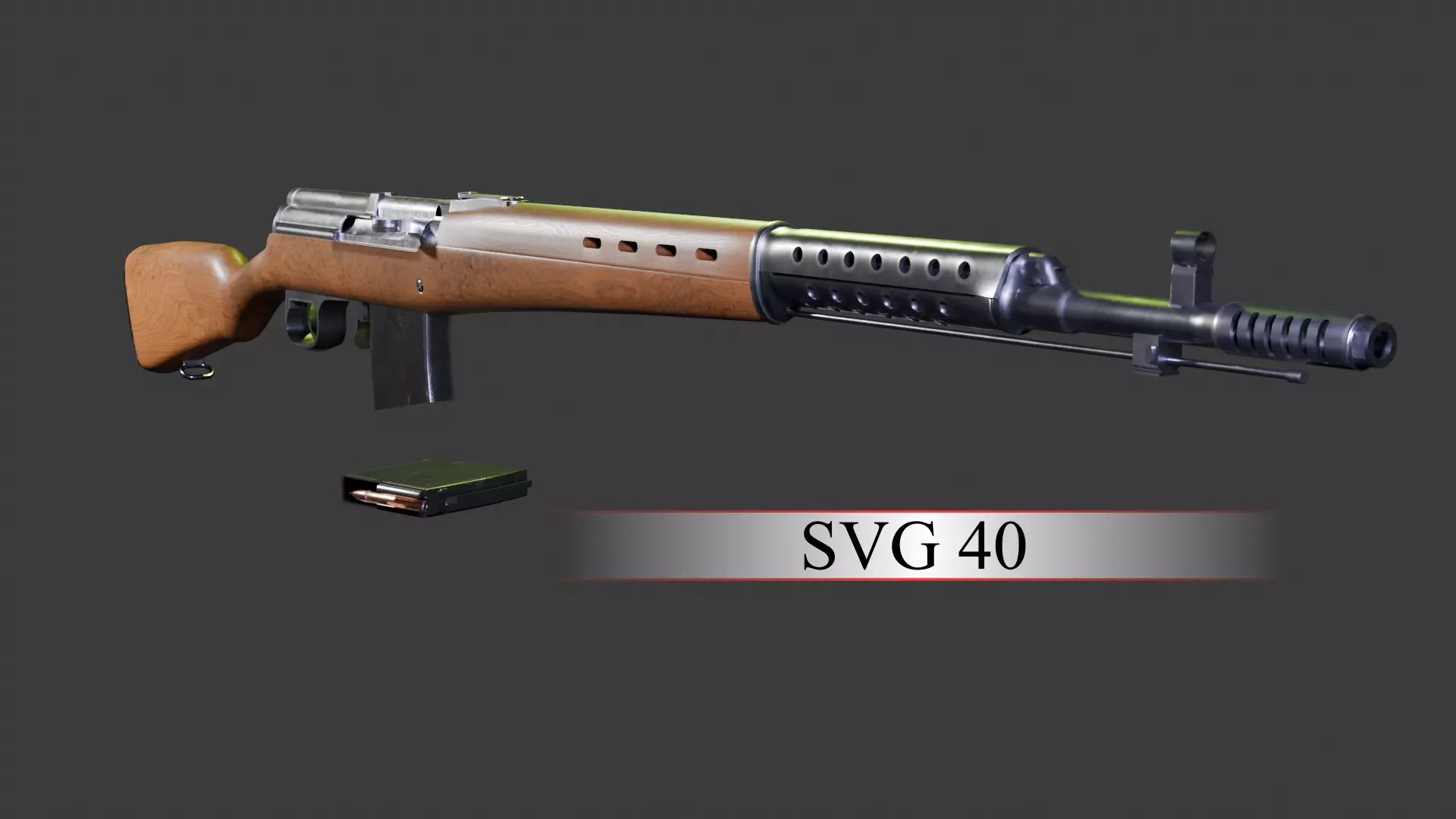 SVT-40 Rifle optimized for modern game engines made in Blender and painted with Substance Painter. Its a LowPoly gun that will work perfeclty in any modern game engine. The textures are split up into 3 UV's Metal/Wood/Magazine. Textures are 4K resolution and are PNG format. include Color, Height, Metallic, Normal and roughness Textures.The Gun is split up into 16 parts so its easy to rig.