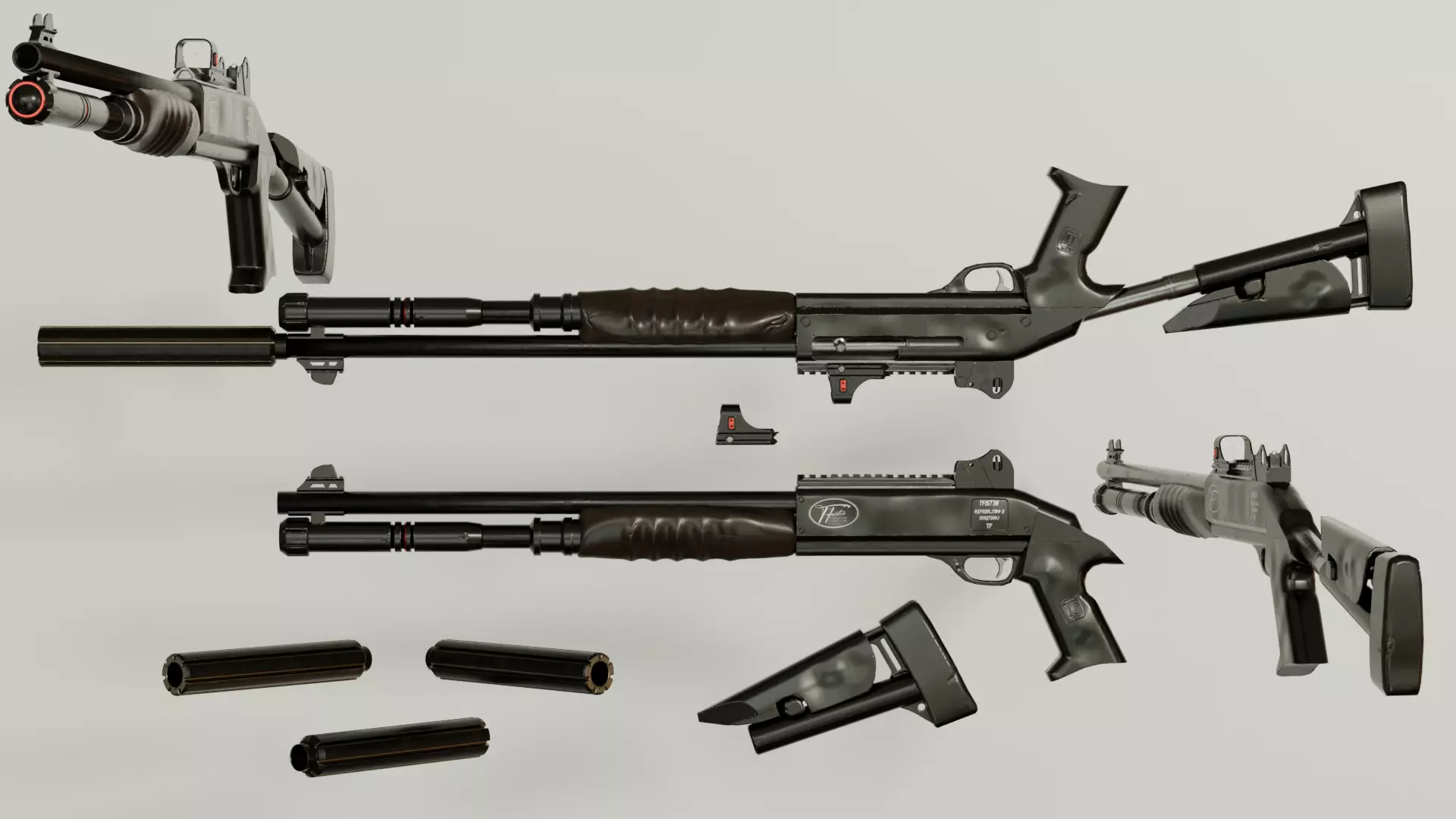 Hi, im selling low poly model of a Tactical Shotgun with red dot sight, model is high quality, modeled in Blender, high poly baked on low poly in Marmoset toolbag, then textured in Substance Painter 3D.