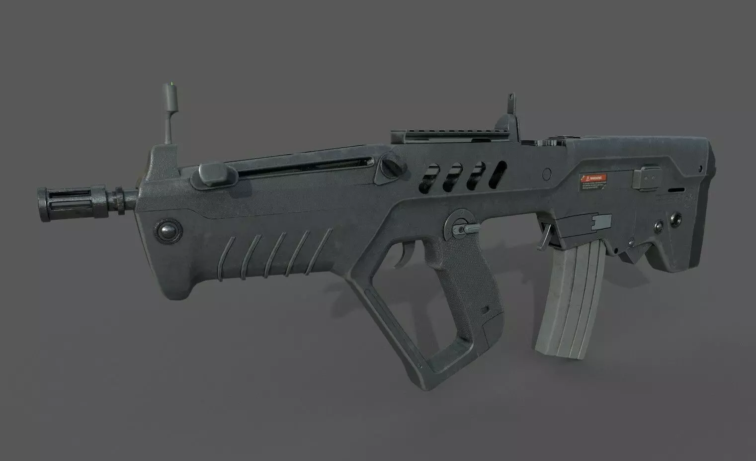 Tar-21 bullpup weapon, for more info about this rifle look this Wiki article: https://es.wikipedia.org/wiki/IMI_Tavor