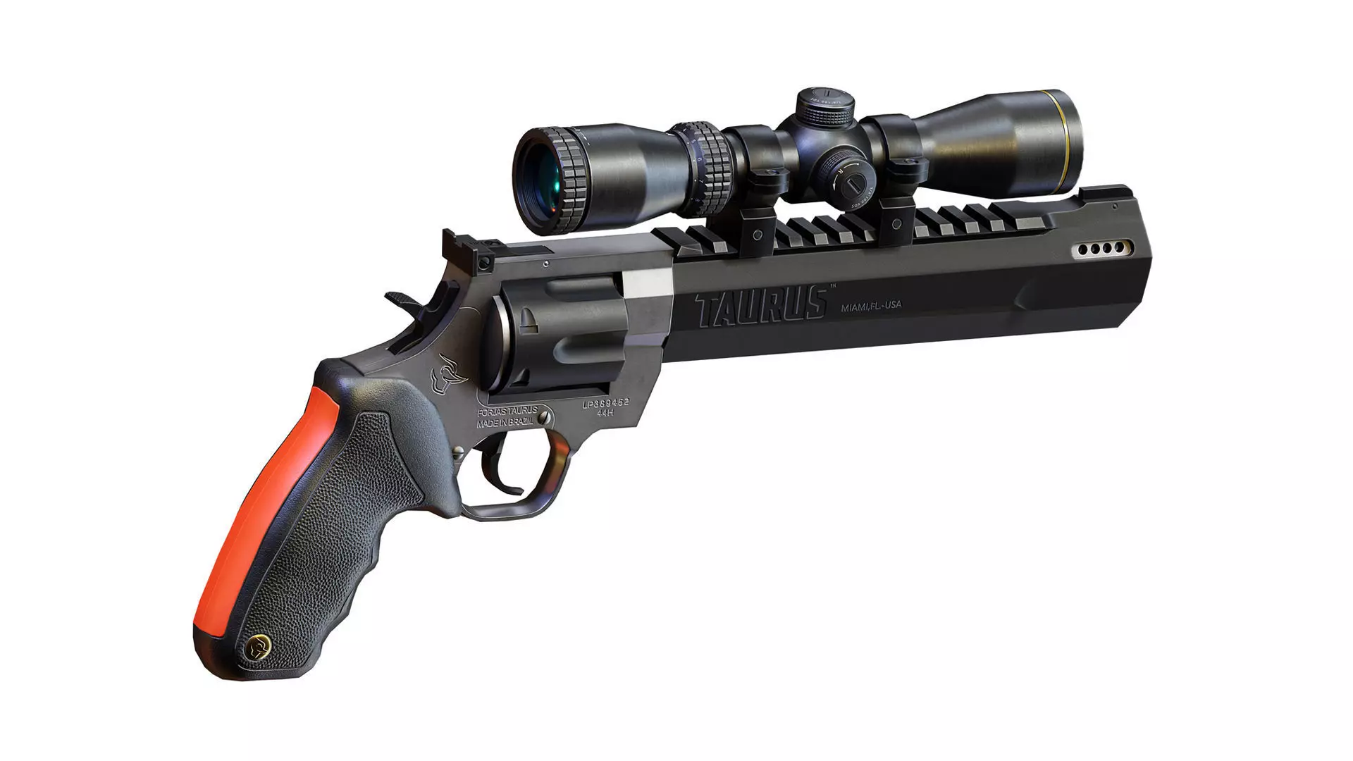 Taurus Raging Hunter 44 Mag Revolver With Scope Game Ready Model Created in Blender 2.92 ,All parts have been separated and named appropriately.