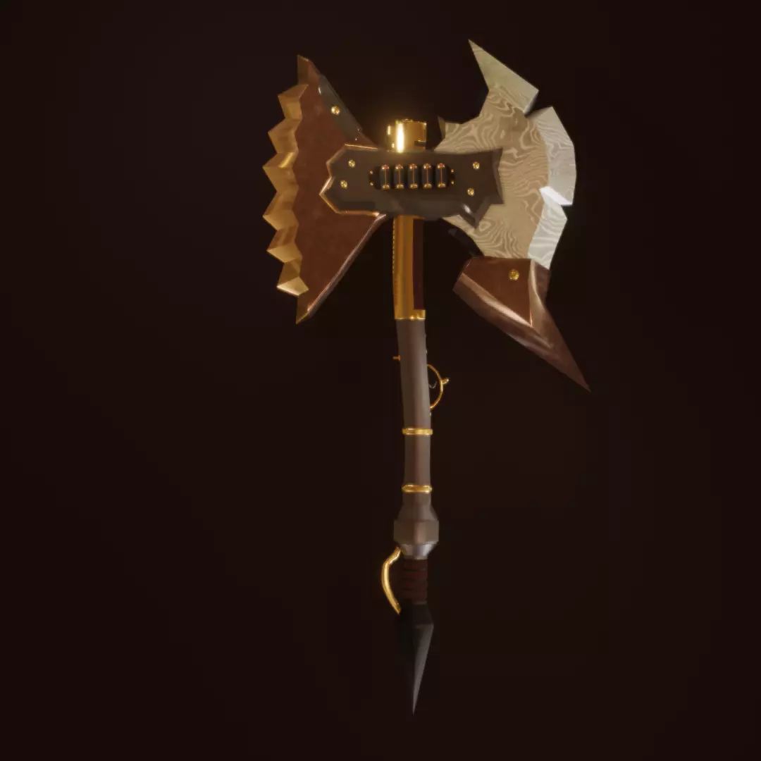 The Axe Gun low polygon model, complete with its UV unwrap and a backup of the model before modifiers have been applied for any tweaks.The textures Winrar file used during the process of making this asset.A good collection of materials even the spare ones of the moment of making this project on a Winrar file.