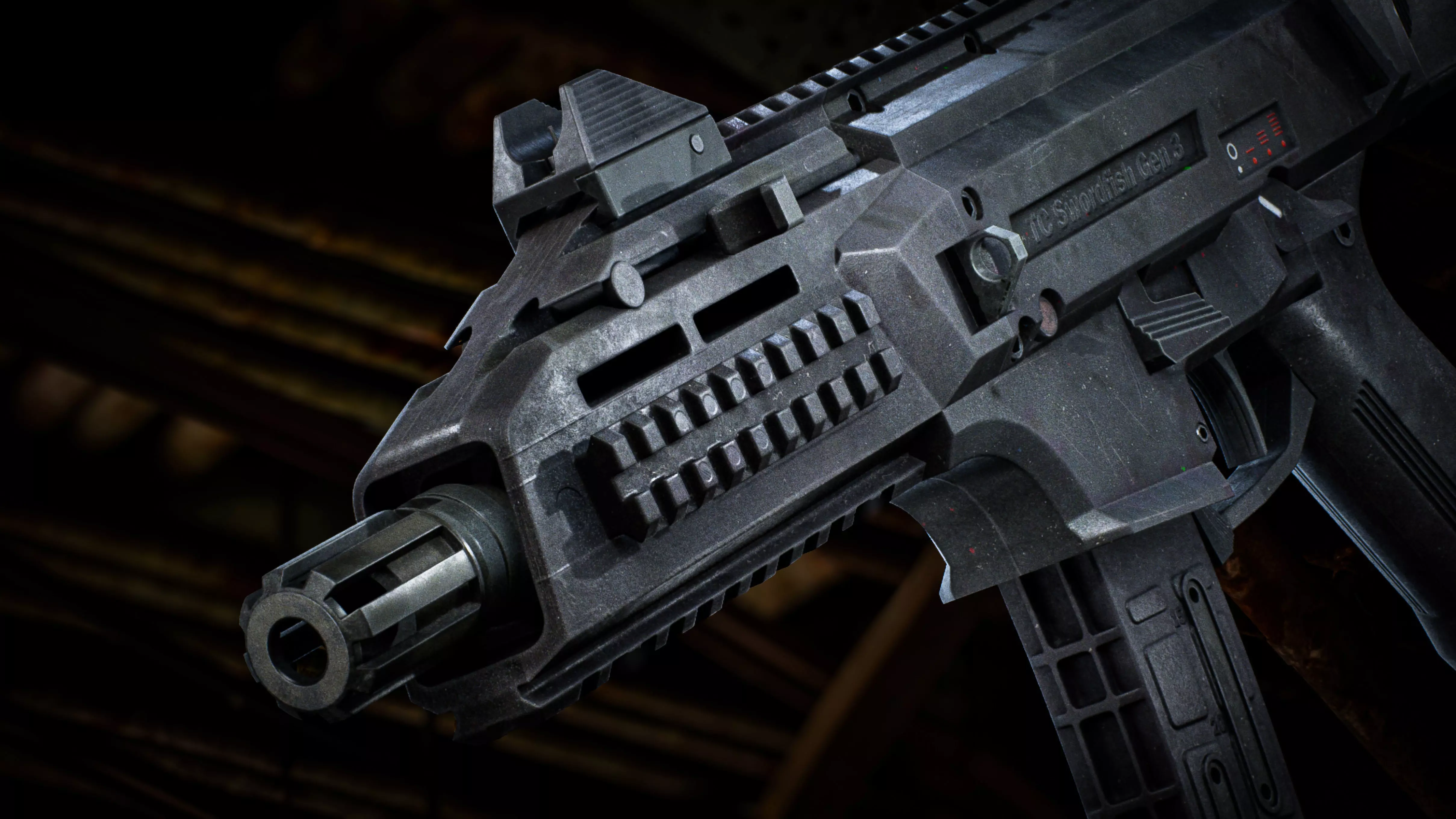 TS Swordfish is a submachine gun inspired by the legendary CZ Scorpion.This ultra-modern SMG offers extensive customization options thanks to multiple Picatinny rails, allowing a wide range of optics, grips, and tactical accessories.