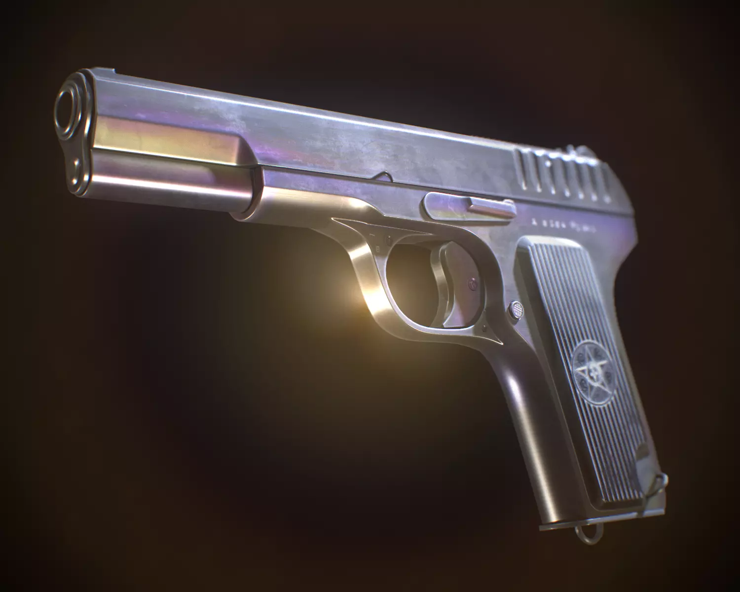 Game Ready low poly 3d model of Tokarev pistol TT-33
