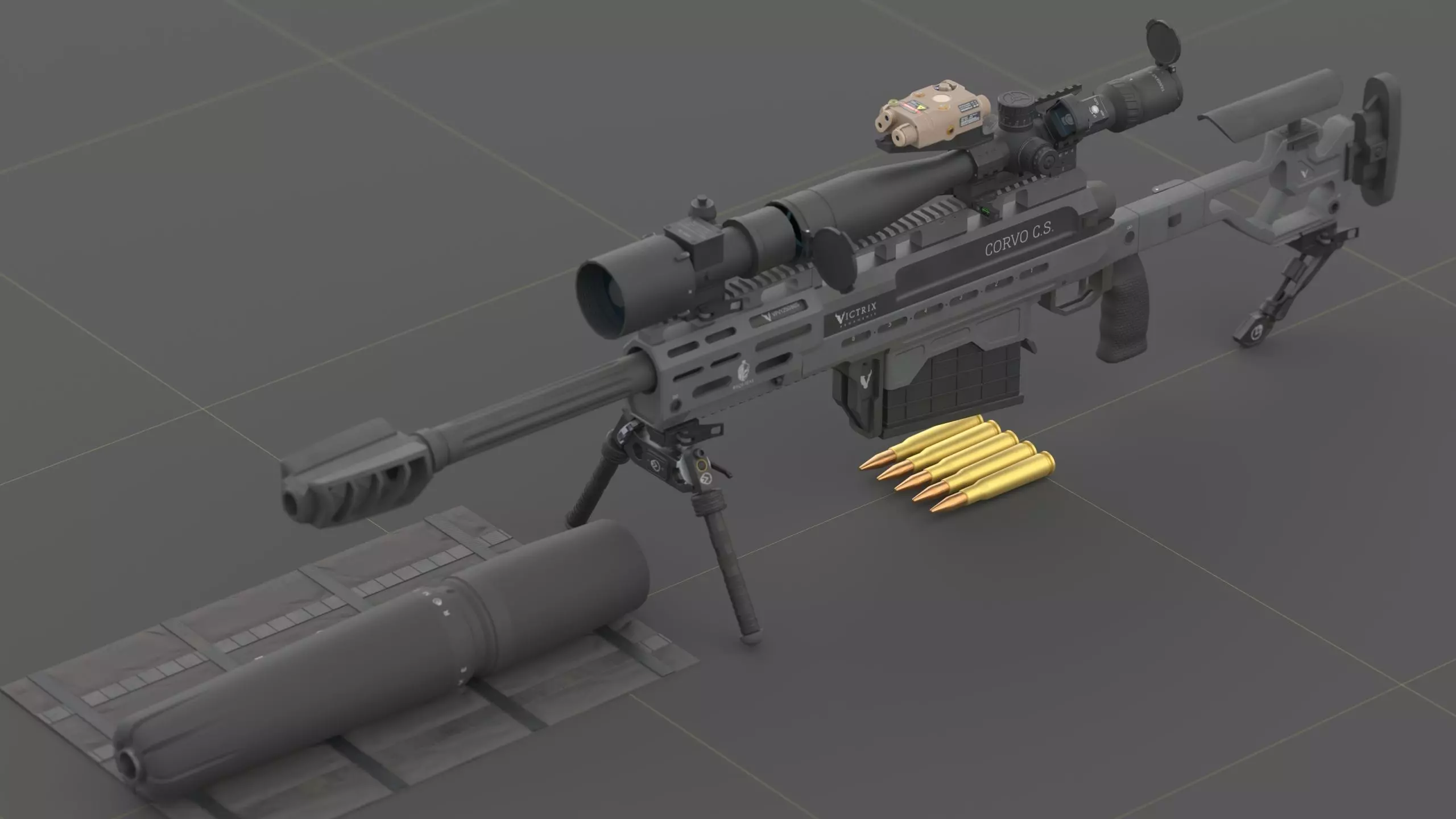 Victrix Corvo CS - The most compact 50Bmg Rifle Low-poly 3D model