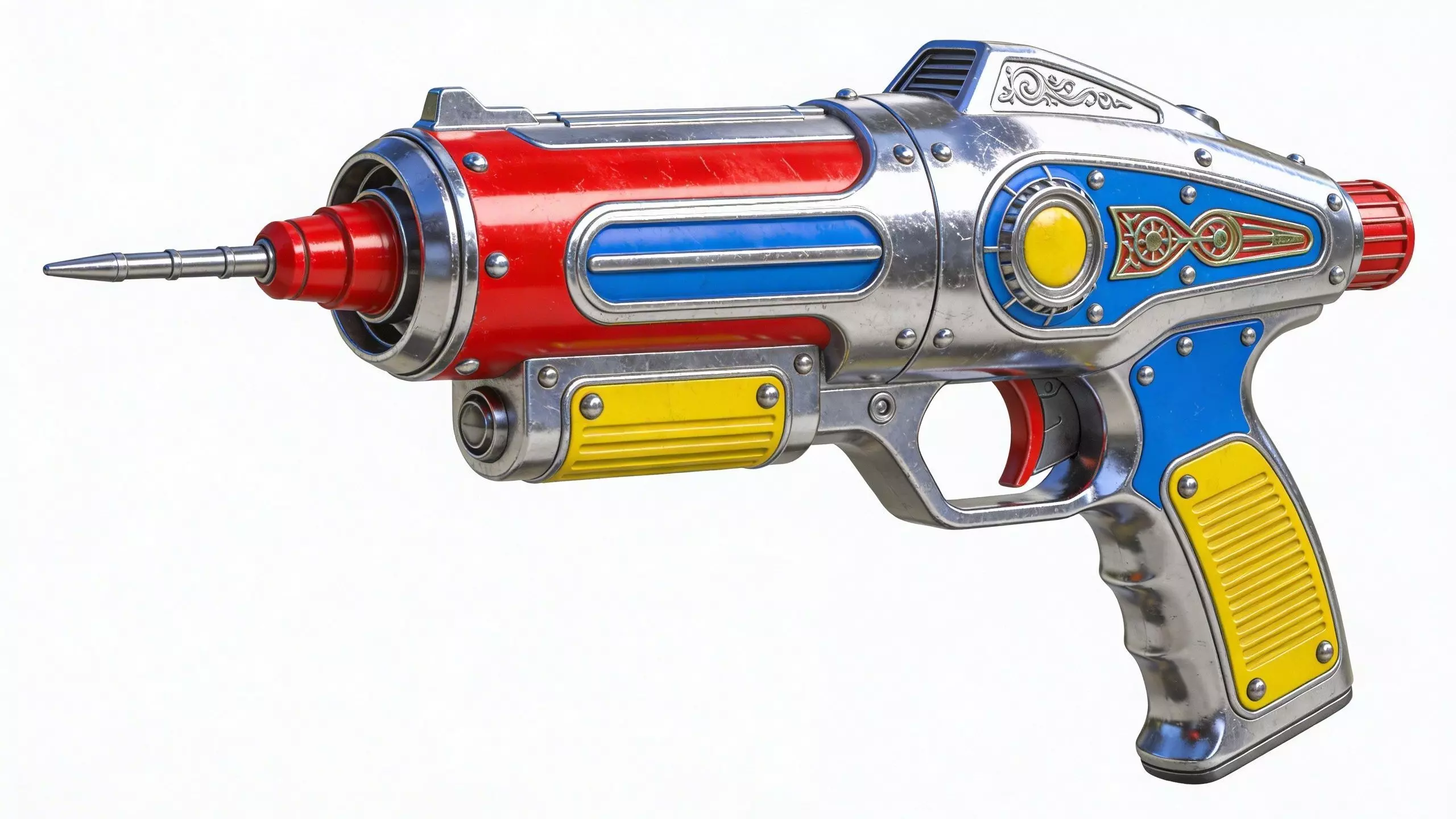 TagsAtompunkRaygunBlaster3DModelRetroSciFiChromeWeaponPBRGameReadyUnityUnrealLowPoly4KFuturisticVintagePropIndustrialSpaceCosmic