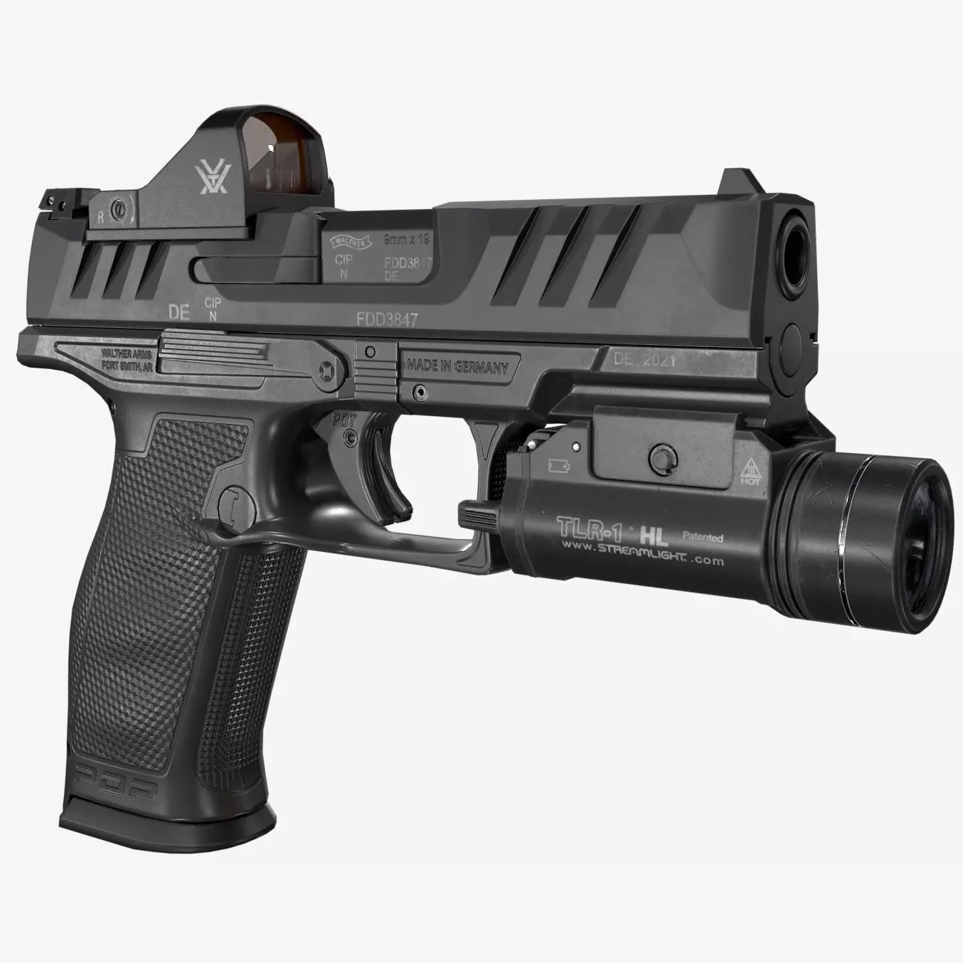 Walther PDP Fullsize with attachments Low-poly 3D model