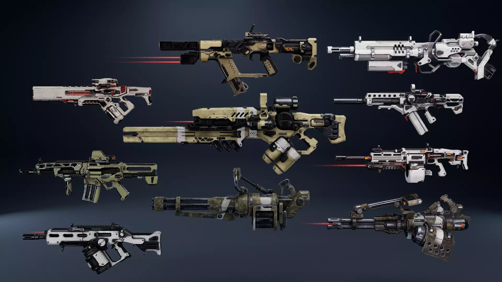 Weapon Sci Fi Pack Contains 10 models. All textures 4096 size. (BaseColor, AO, Roughness, Metallic, Normal, Emissive)