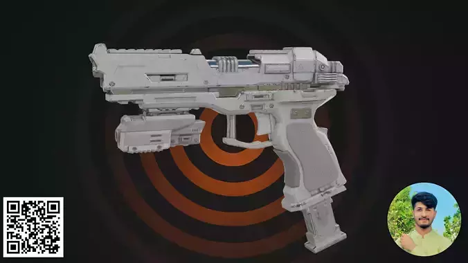A high-fidelity 3D model of a futuristic tactical pistol featuring a sleek white ceramic-style finish. This asset is designed for AAA sci-fi environments, cyberpunk settings, or futuristic law enforcement characters. The clean, high-contrast aesthetic makes it stand out as a premium weapon in any game engine.
