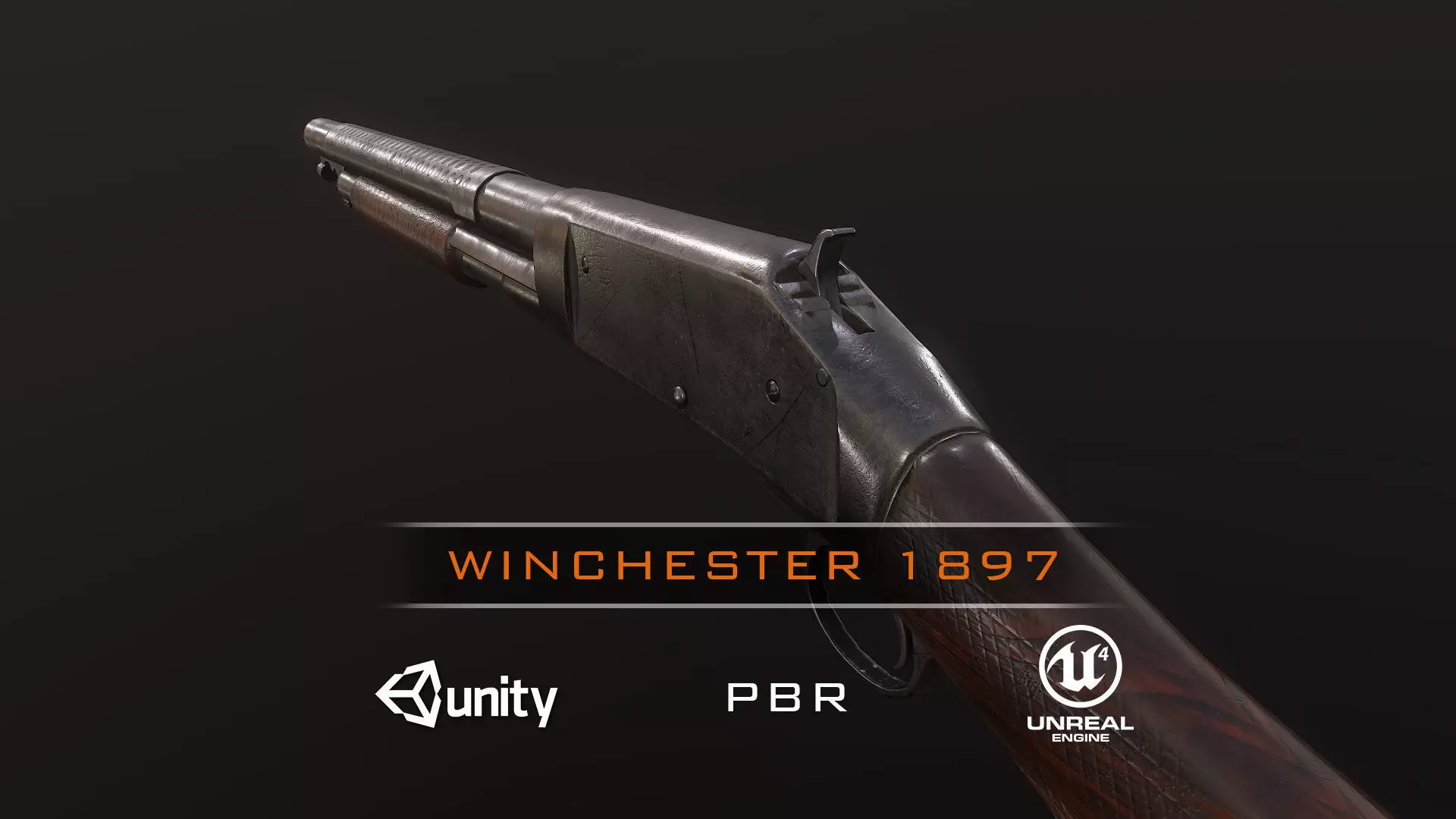 Winchester 1897 shotgun ww2 pbr low-poly Low-poly 3D model