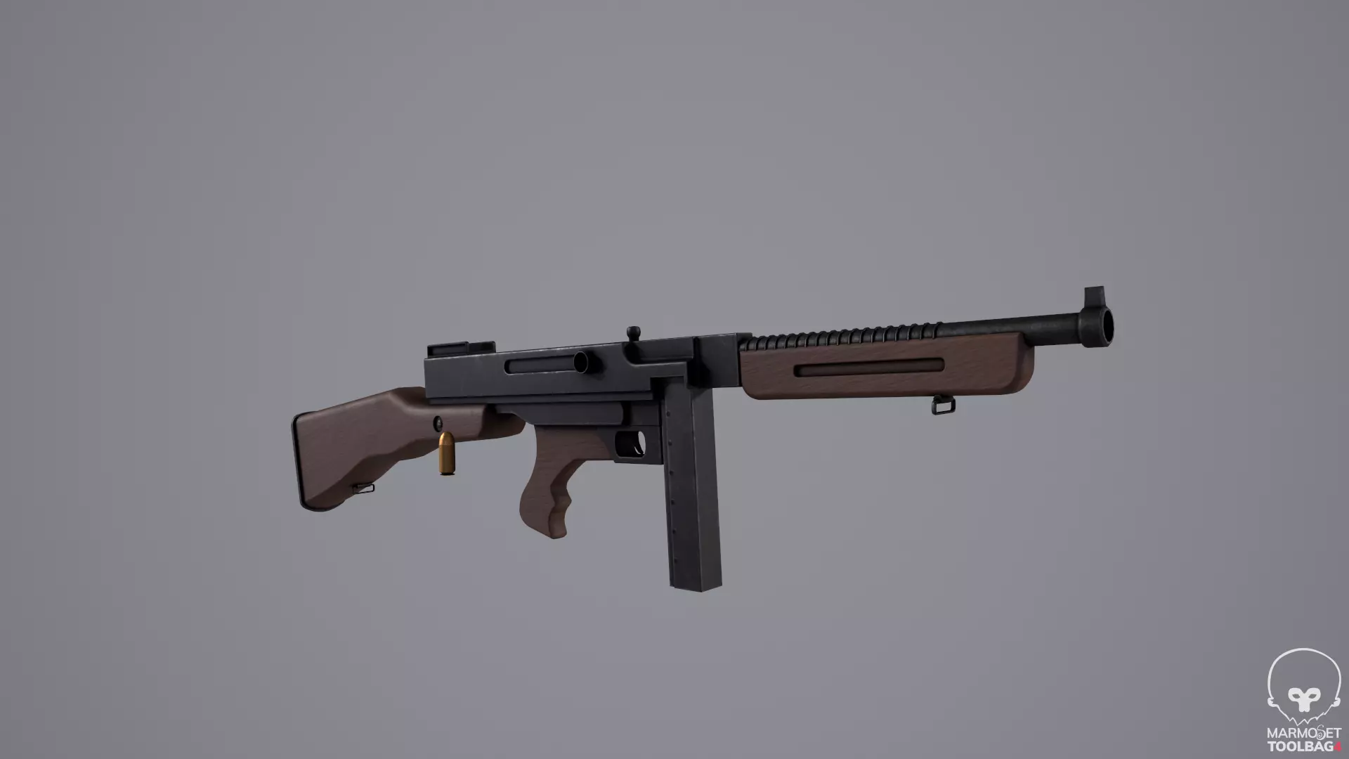 Low poly machine gun model made with game optimization in mind. The textures are PBR based with Normal,Base Color, Roughness and Metallic maps that are 4K. The magazine is seperated from the main gun body in order to make it easier should you need to animate it in the future.
