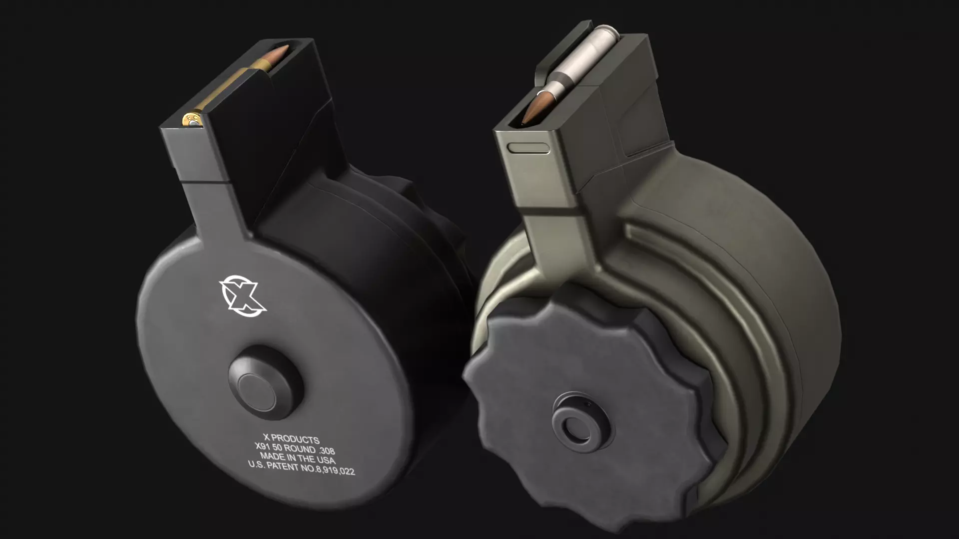 X-Products 50 Round Drum Magazine low poly game asset for the Heckler & Koch G3, HK91, HK51 battle rifles. *Please note that proportions may not be 100% correct. This model isn't made for 3D printing, it's a low poly asset made for use in games. The gun in the renders is not included in this purchase. *