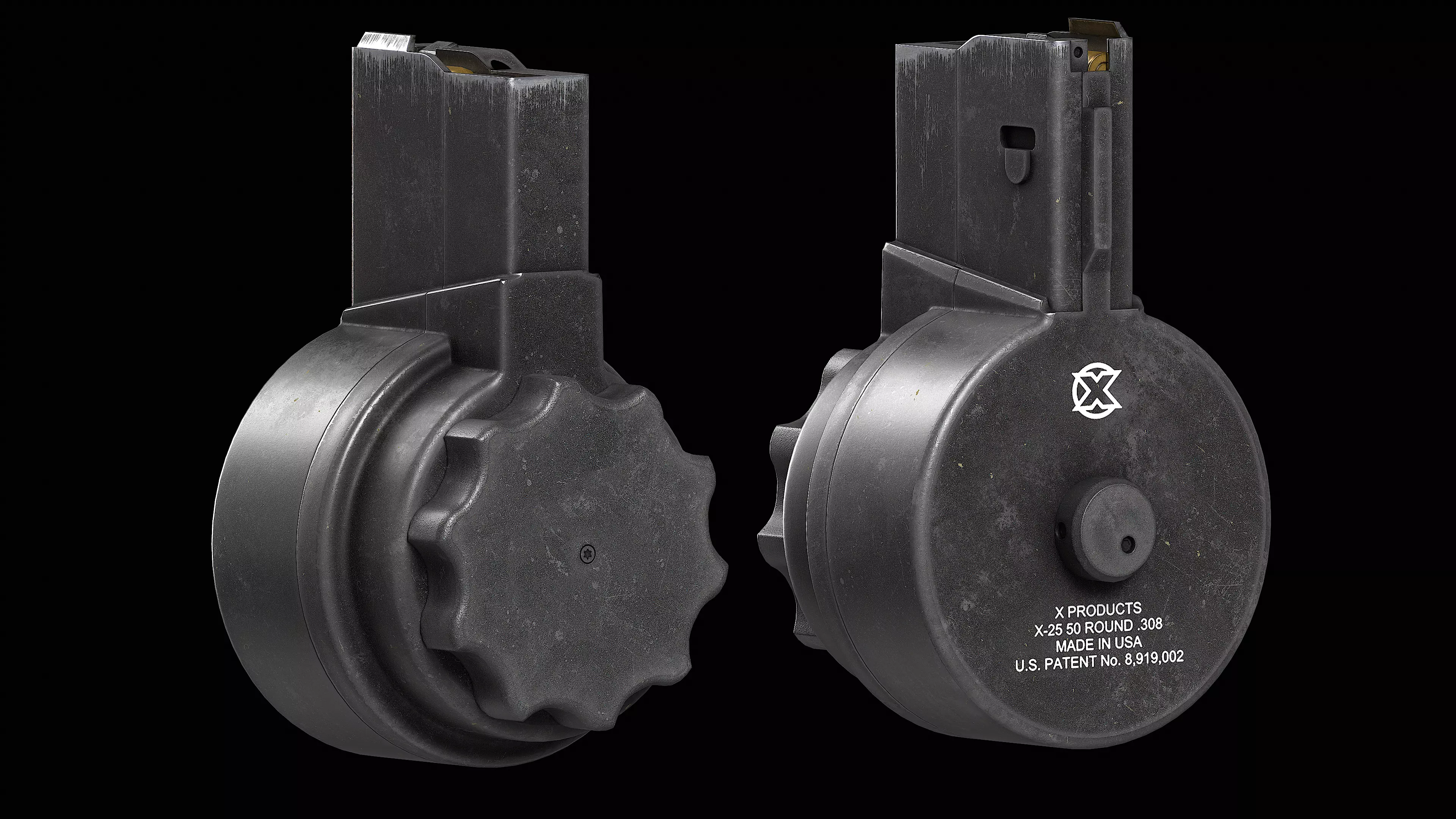 X Products X-25 50 Round Drum Magazine cal. 308 : Game-ready 3D models ideal for professional projects in gaming, movie, animation and virtual reality. Our models are highly detailed, accurate and realistic, making them ideal for use in the most demanding projects. Most of our customers use them to create modding for games such as Ready or not, Arma3, Tarkov, DayZ, Fallout GTA V, etc.