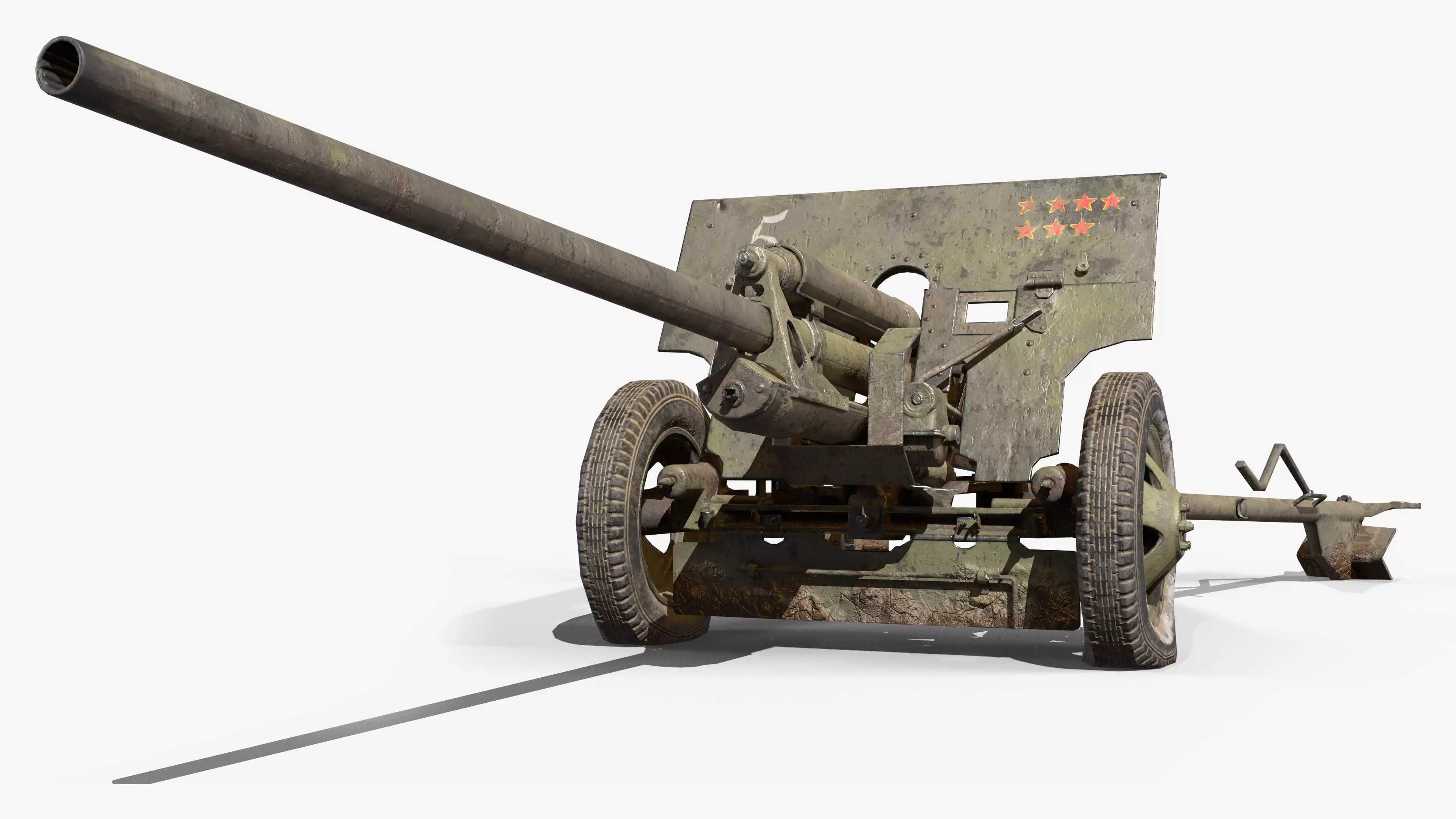 Model ZIS 2 Cannon USSR made in 3D MAX 2022 also have formats Cinema 4d R26, FBX, OBJ, tbscene.