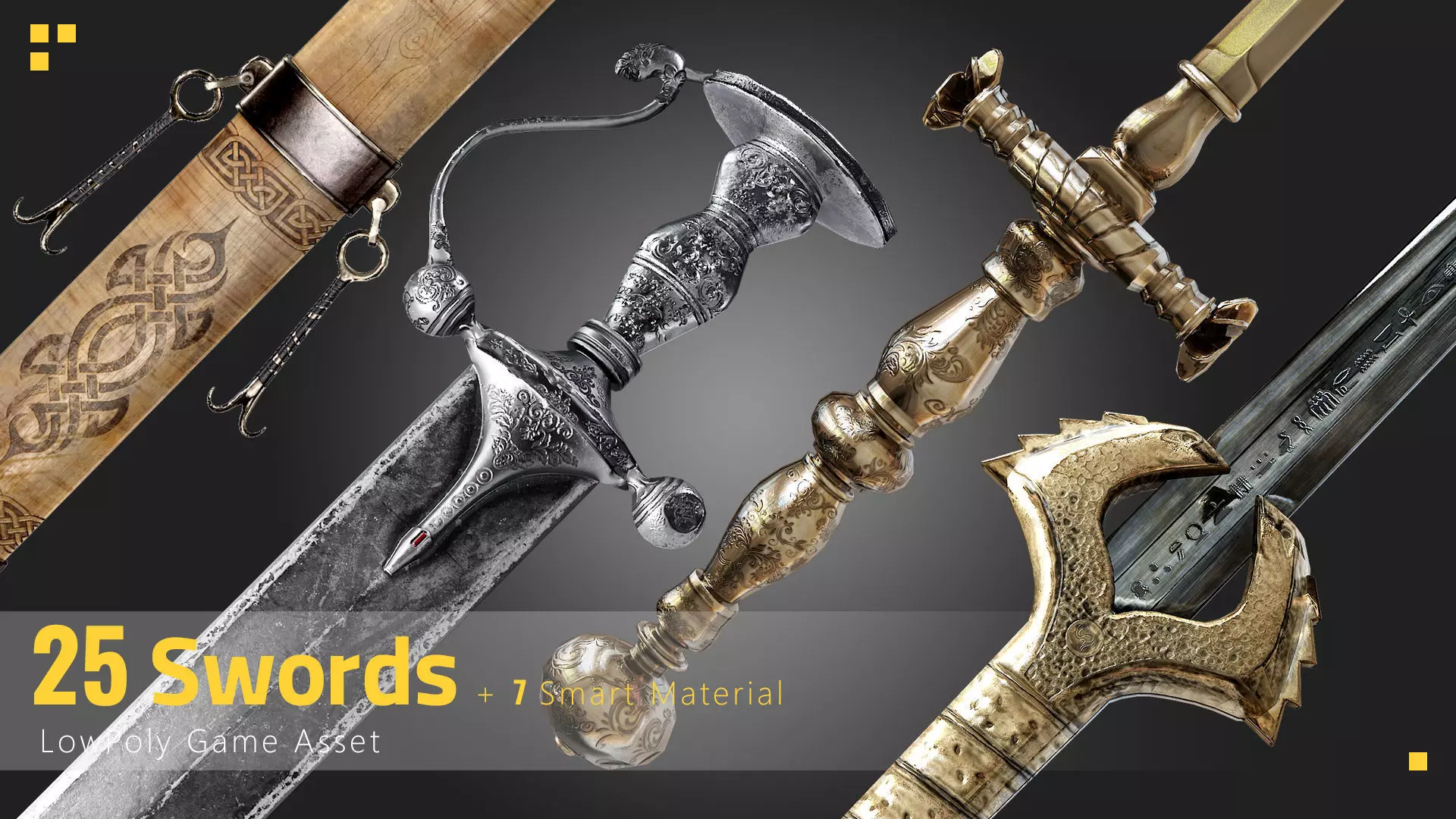 25 Sword Game Asset - 7 smart materials Low-poly 3D model