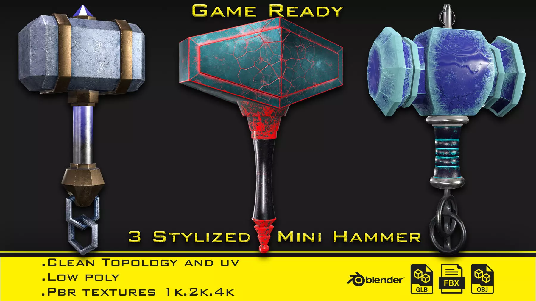 Low poly: (Hammer1: 4.904tris - Hammer2: 7.172tris - Hammer3: 2.224tris)