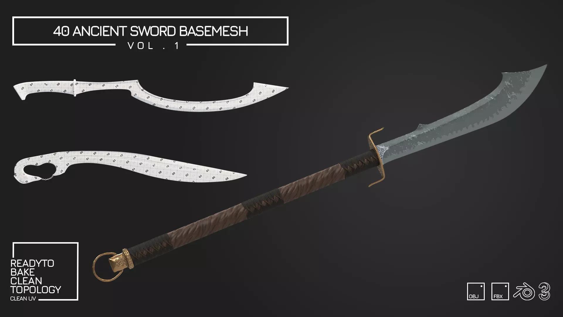 40 Ancient Sword Basemesh Vol1 Low-poly 3D model